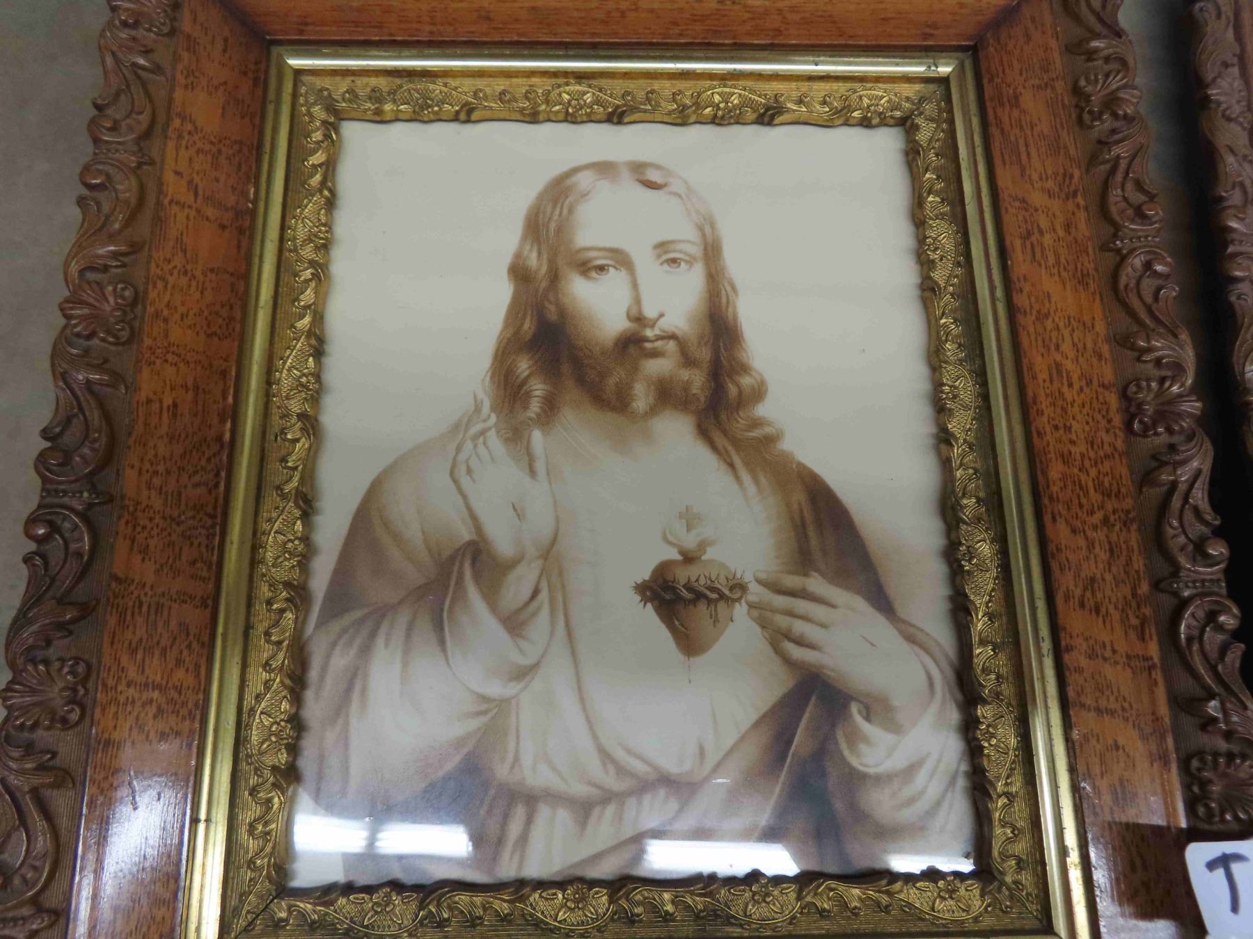 2 Antique Religious Pictures of ‘the Sacred Heart Jesus’ and the ‘immaculate Heart of Mary’ - Very old but in remarkable good condition. The frames are exquisite - great in a vintage home, approximately 8” x 12” each.