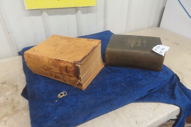 2 Antique Websters Dictionaries- Both are Huge: 1892 + 1907- Brown one is Leather Bound