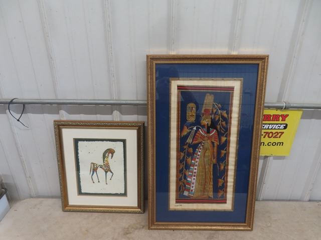 2 Art Pictures on cloth- Egyptian Theme; 1) Limited Print 12" x 17" 1) Largest 18" x 29"