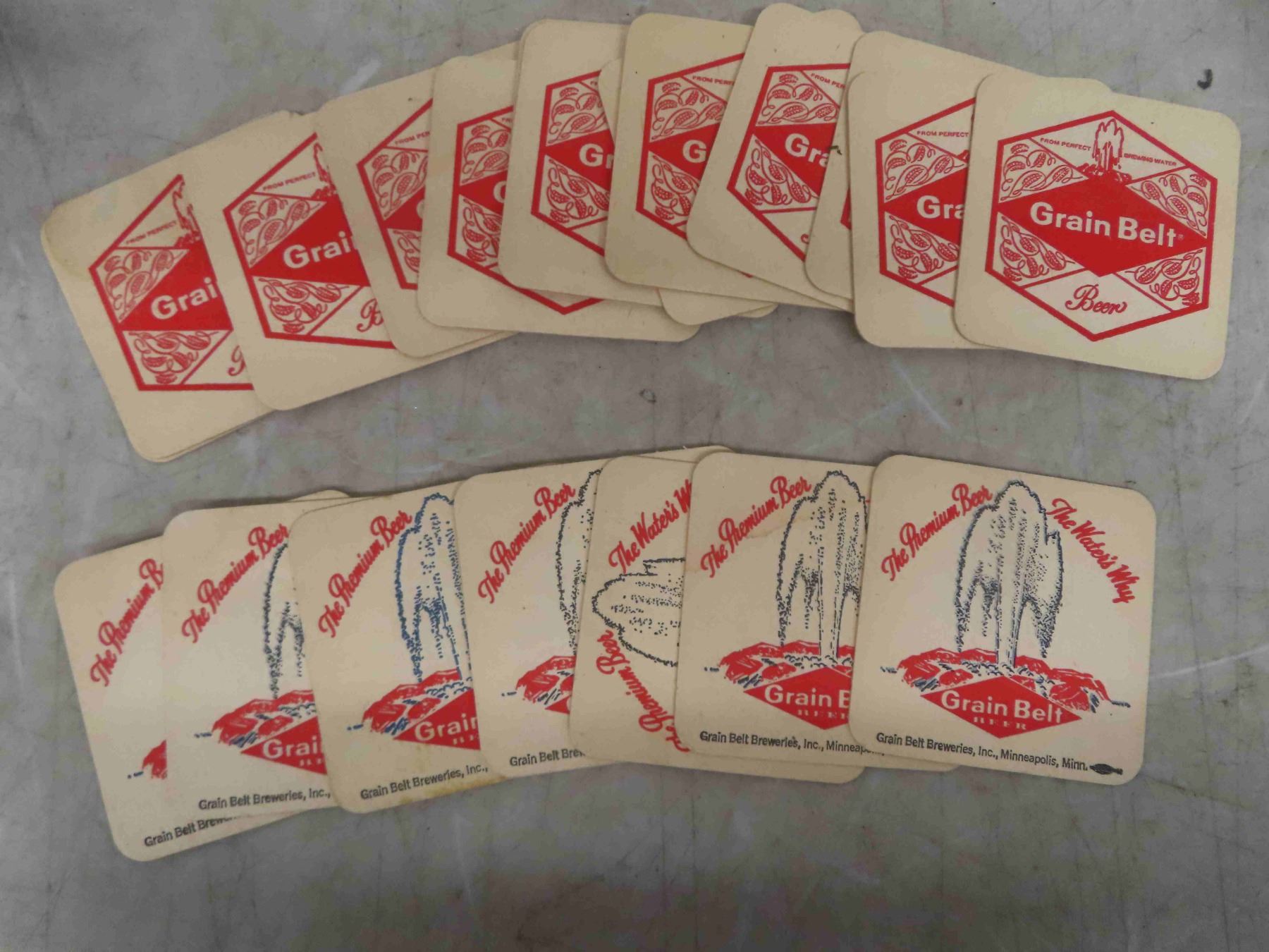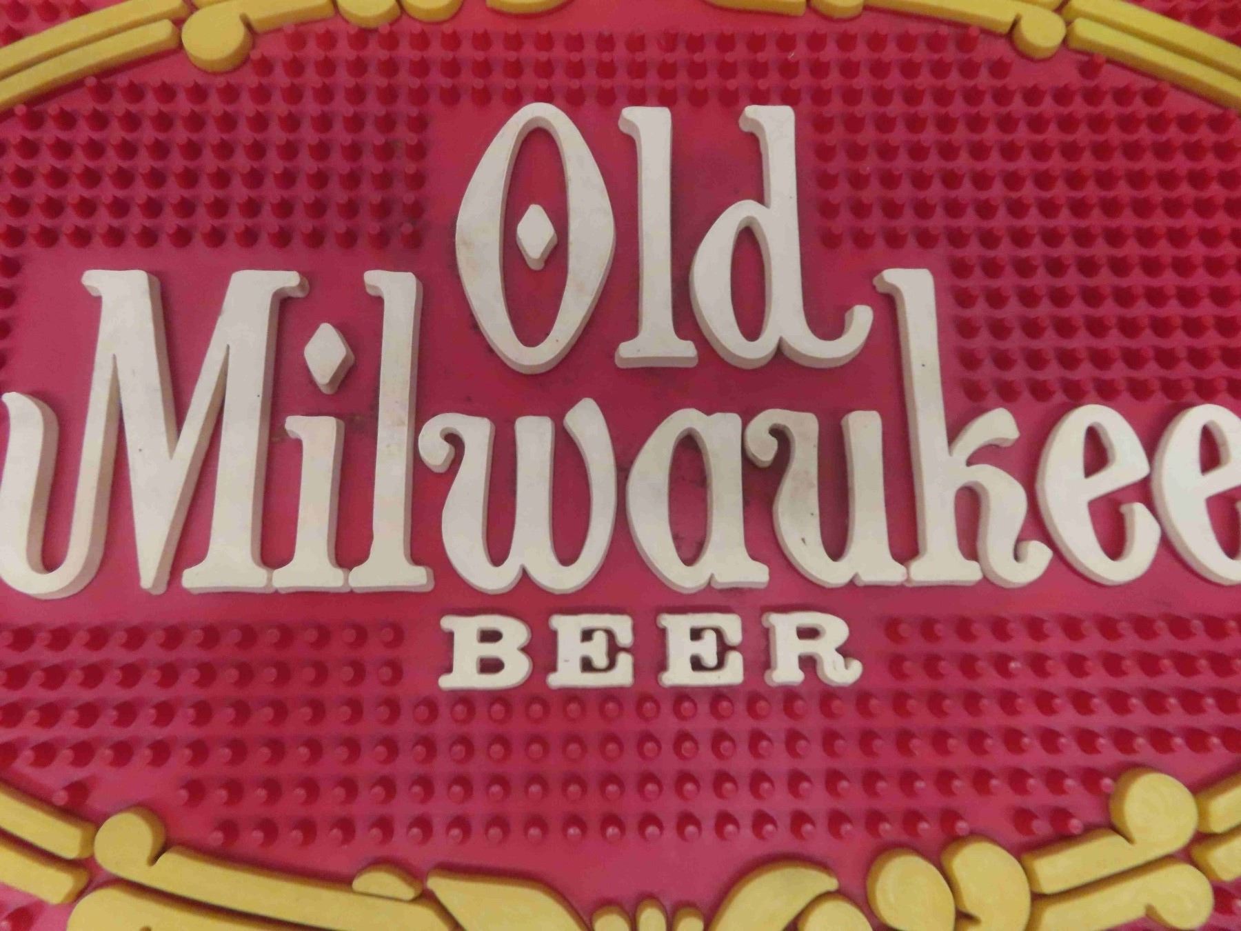 (2) Bar Sets: Inc. Ice tongs + Opener & Corkscrew , Pourer Cap & More in Cases. Grain Belt + Old Milwaulkee Rubber Mat's 17 1/2 " x 11 3/4", Coasters.