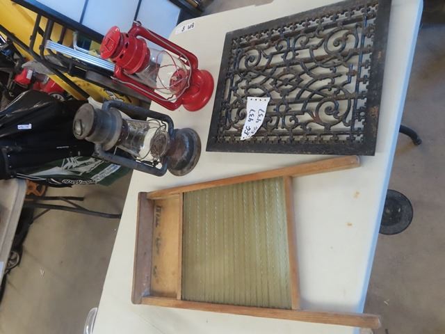 2 Barn Lanterns, Washboard, Metal Heat Grate