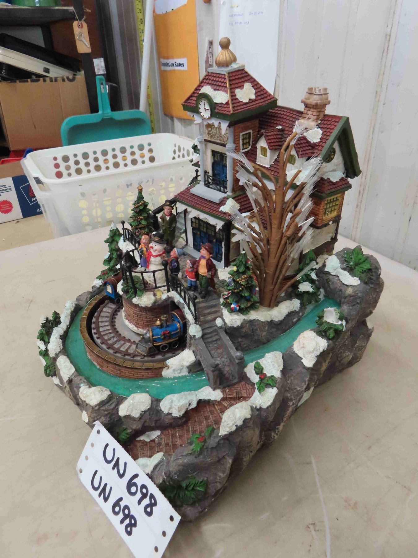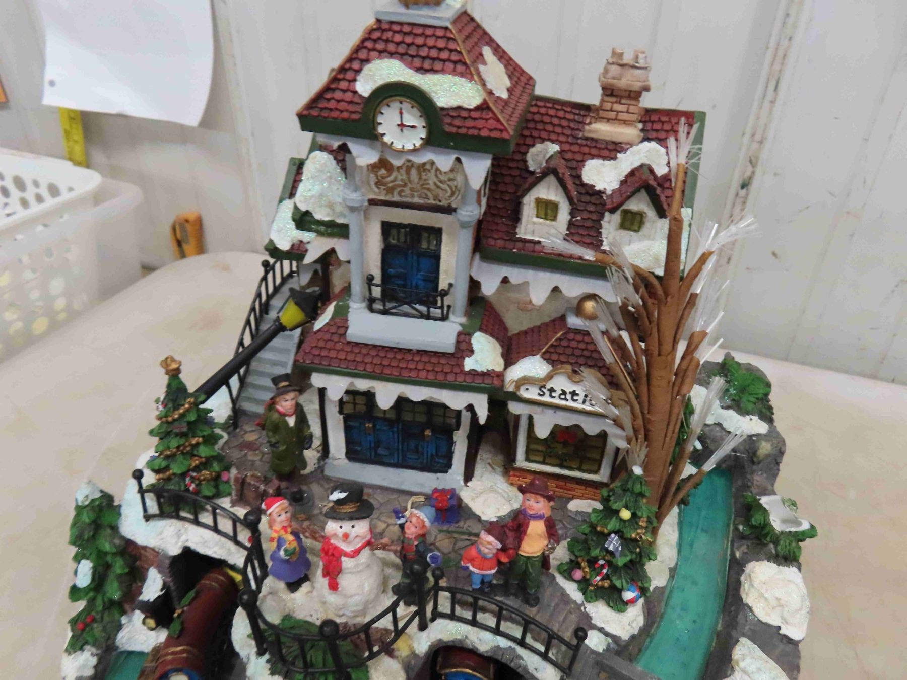 2 Battery Operated Christmas Decorations with Rotating Train and Train Station
