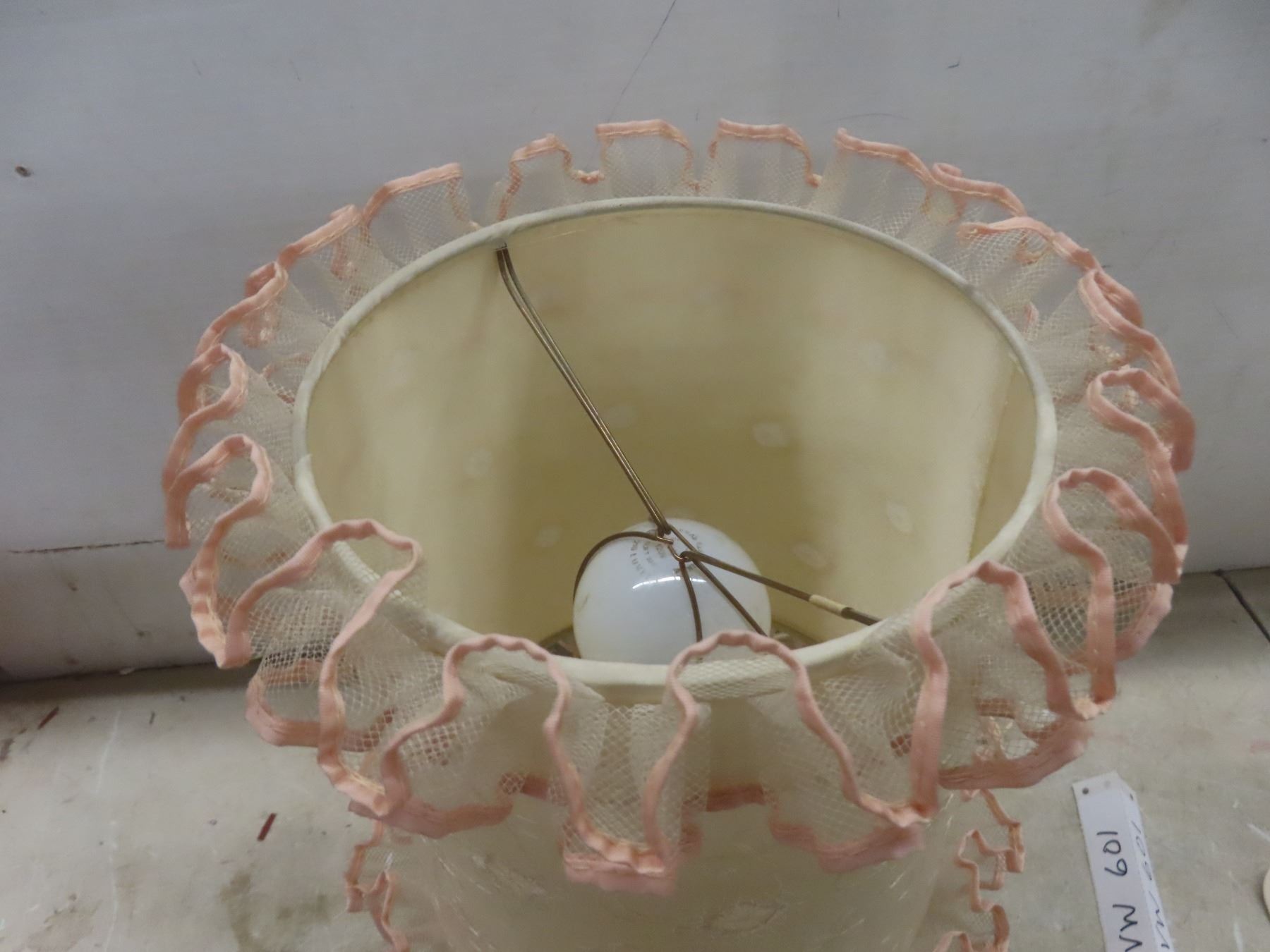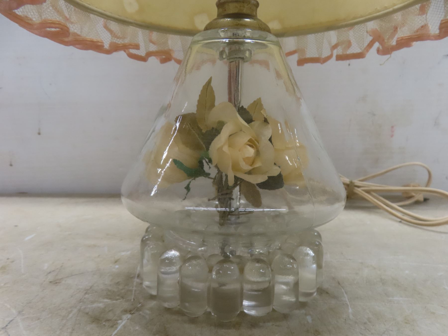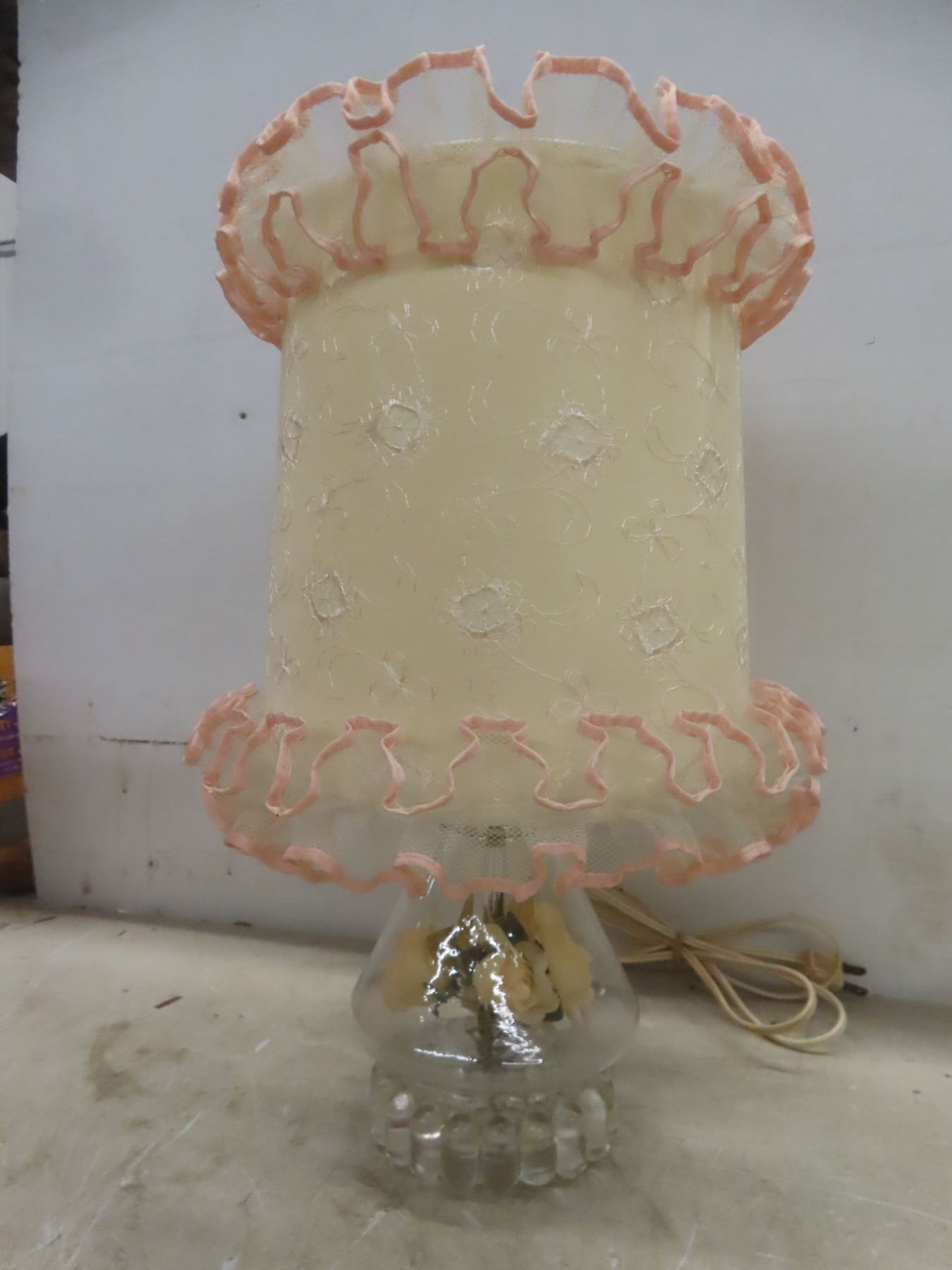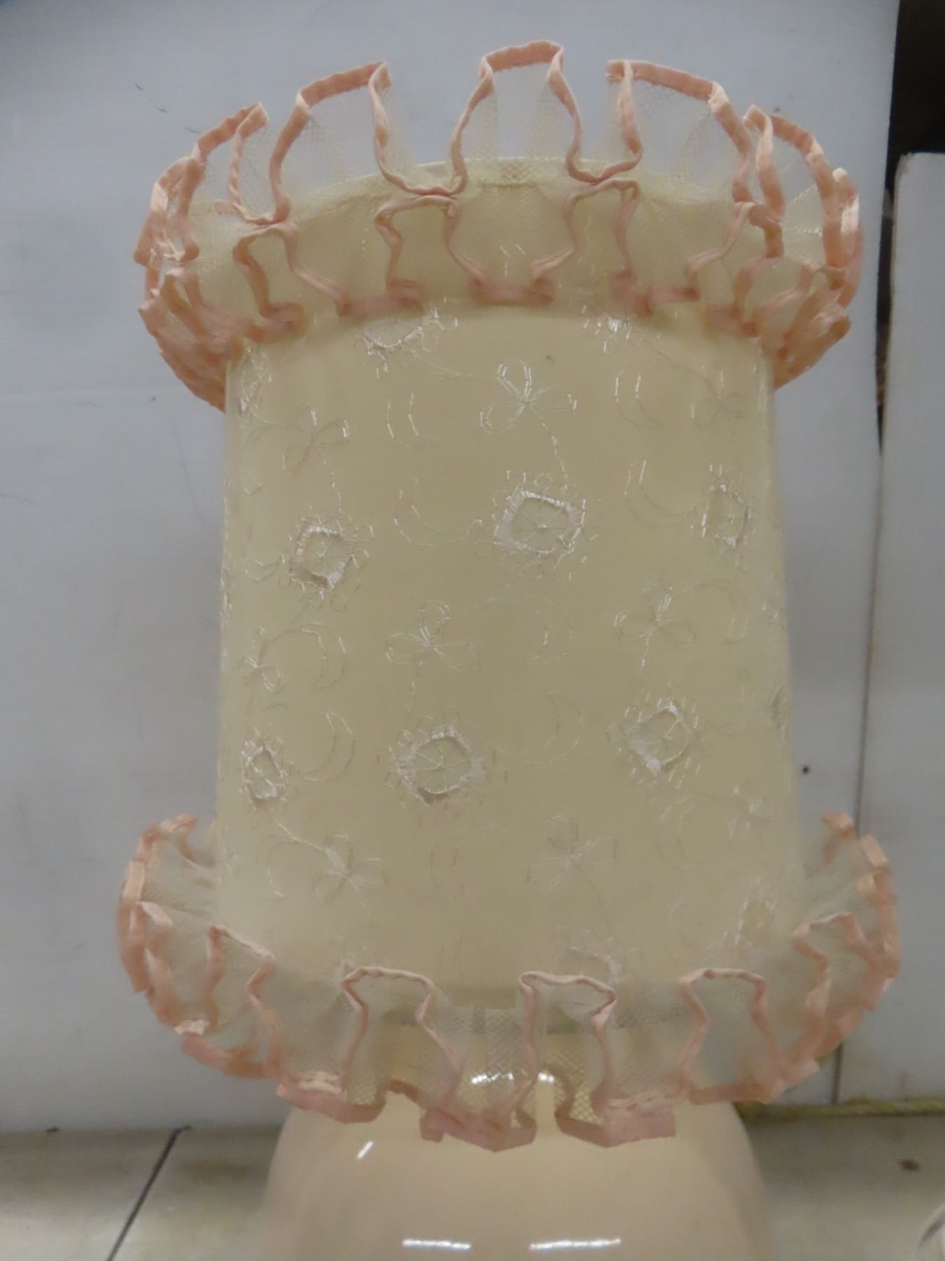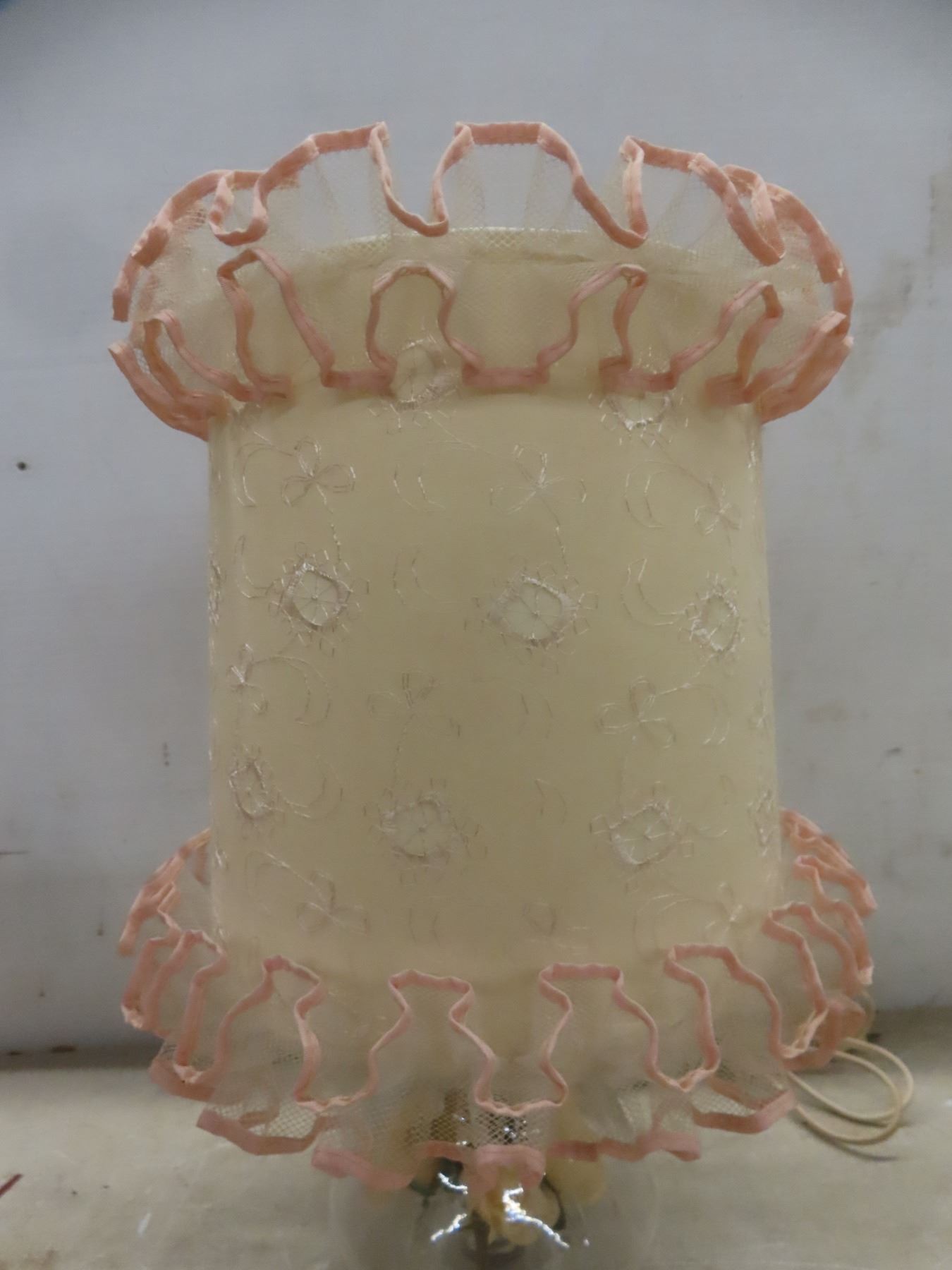 2 Bedside Lamps With Lacy Shades (Tallest 16") And 2 Ceramic Masks.