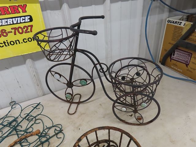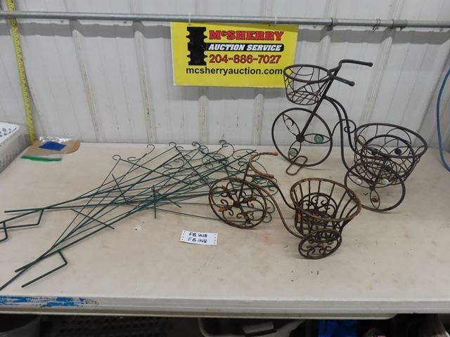 2 Bicycle Planters, Assorted Metal Plant Trellis
