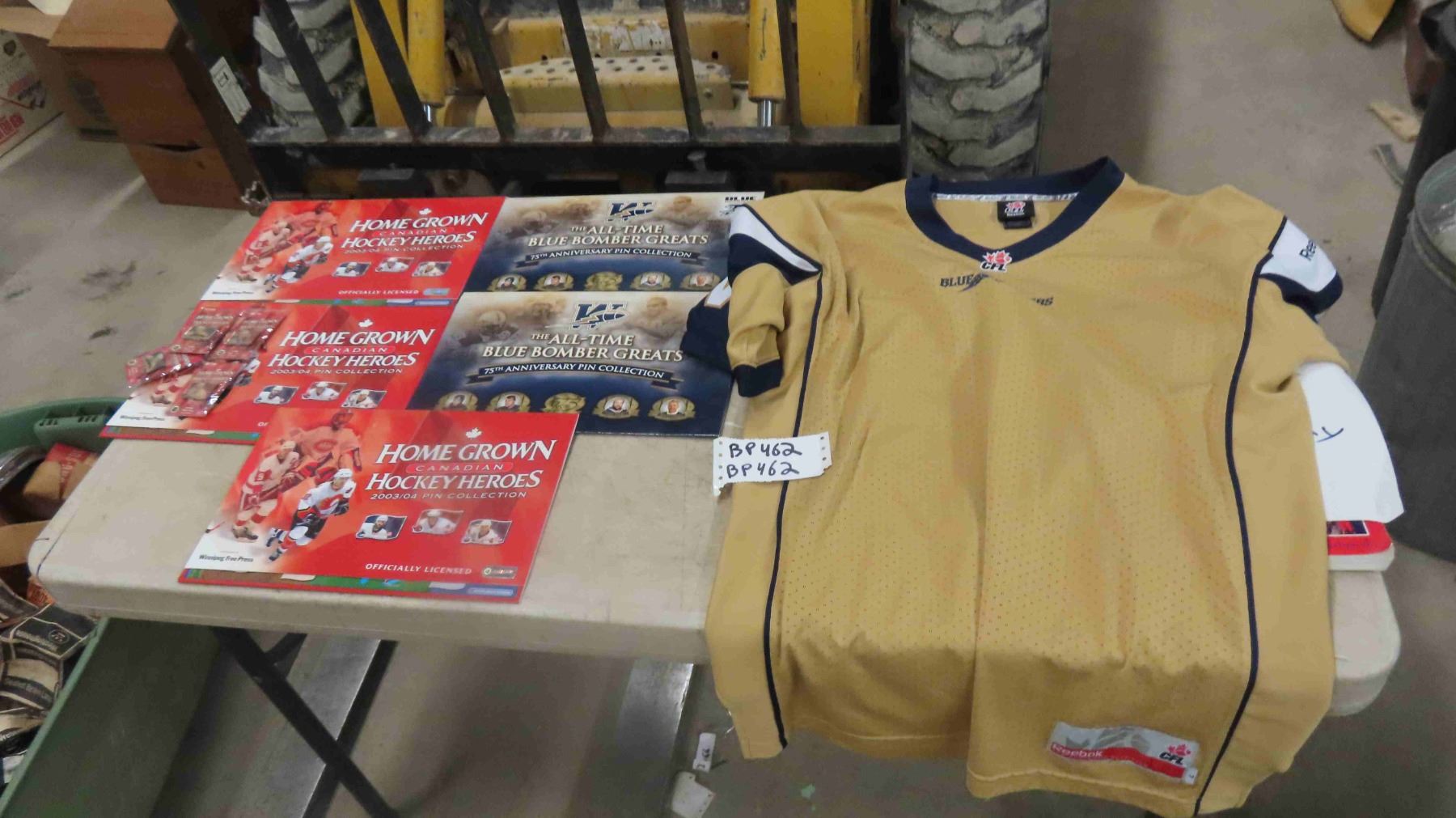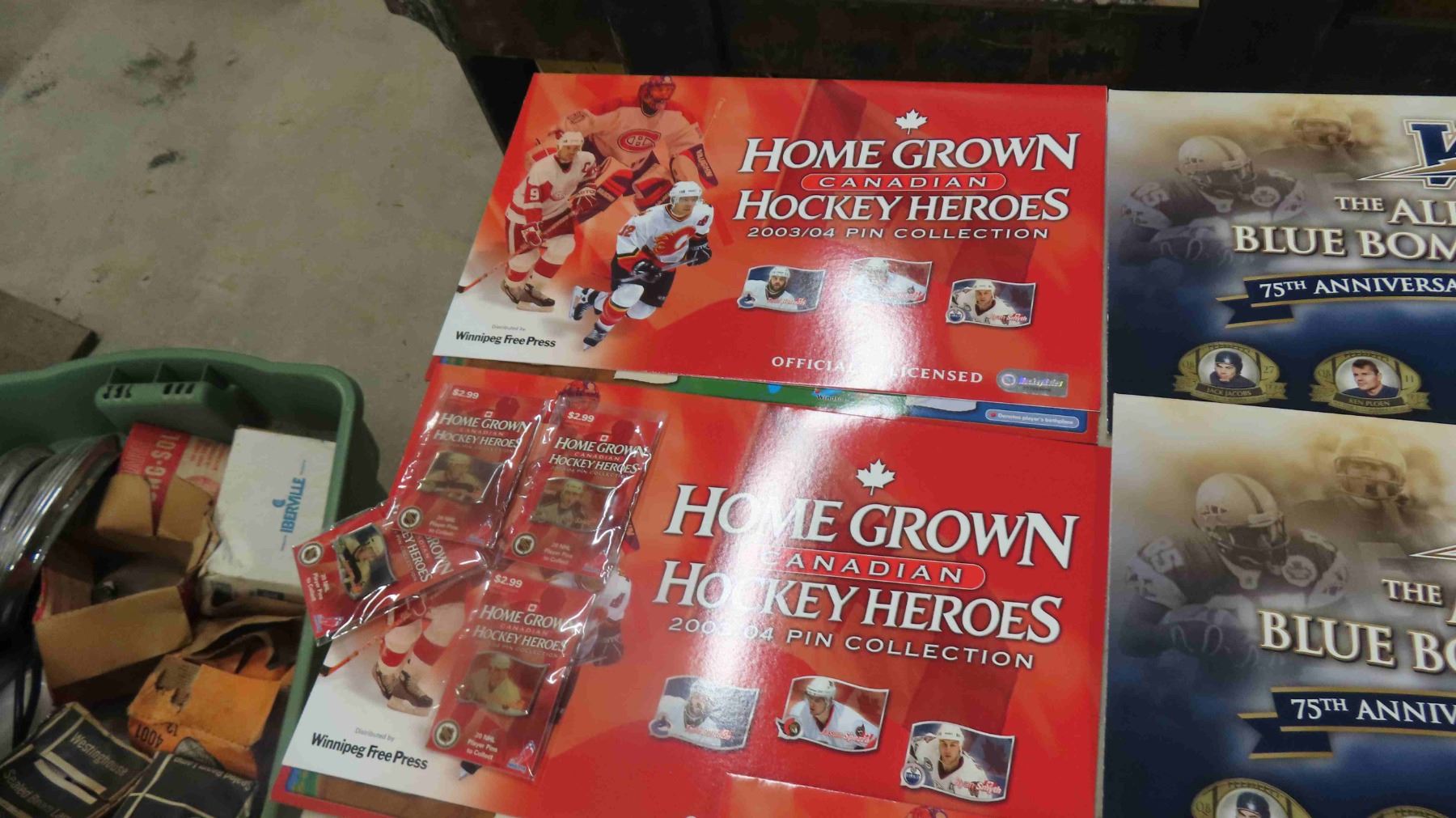 2 Blue Bomber Pin Holding Cards, Blue Bomber Jersey, 3 NHL Hockey Heroes Pin