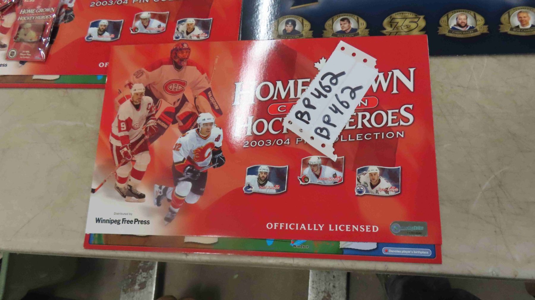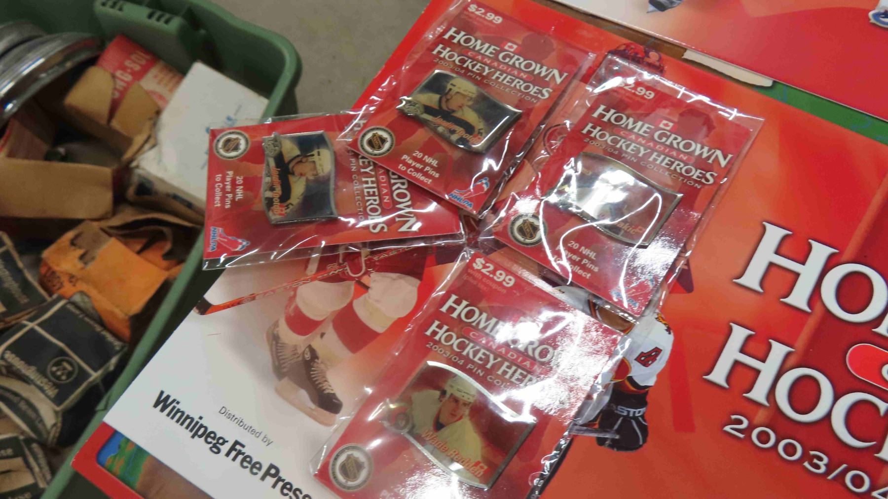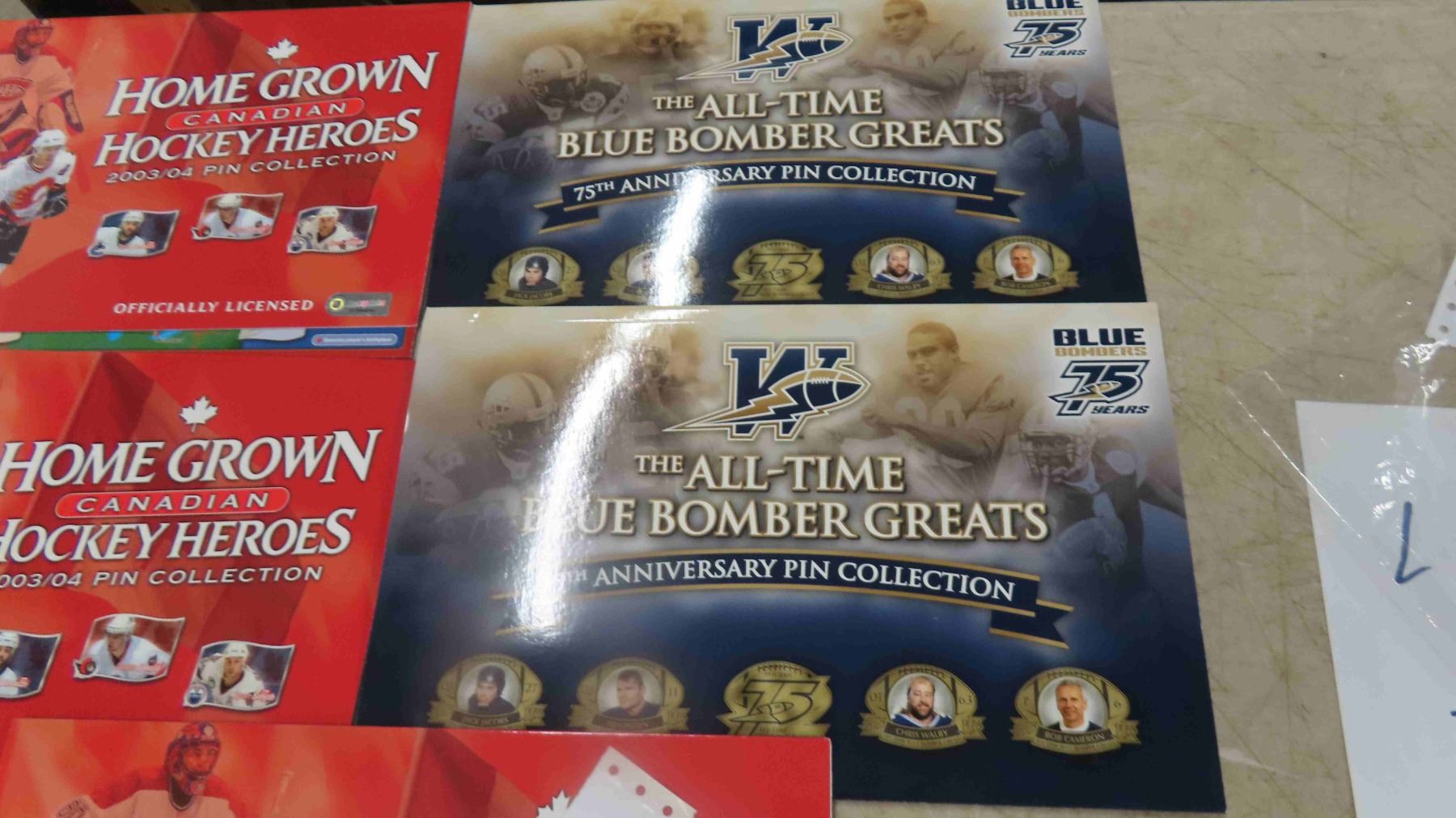2 Blue Bomber Pin Holding Cards, Blue Bomber Jersey, 3 NHL Hockey Heroes Pin cards with 4 Pins