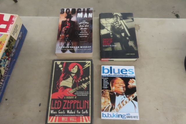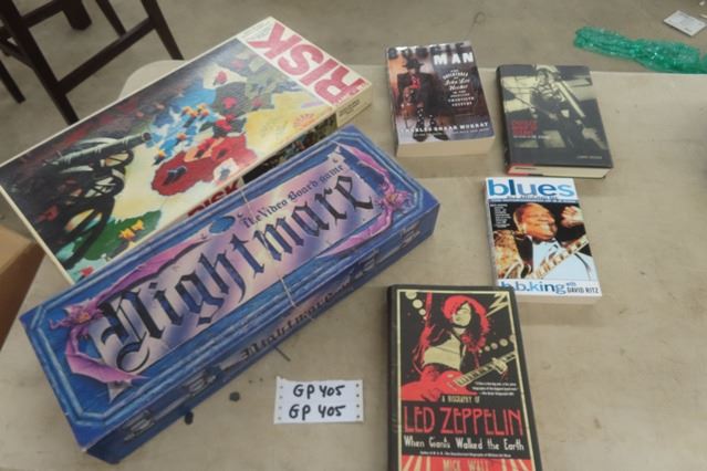 2 Board Games; Risk + Nightmare & 4 Music Biography Books