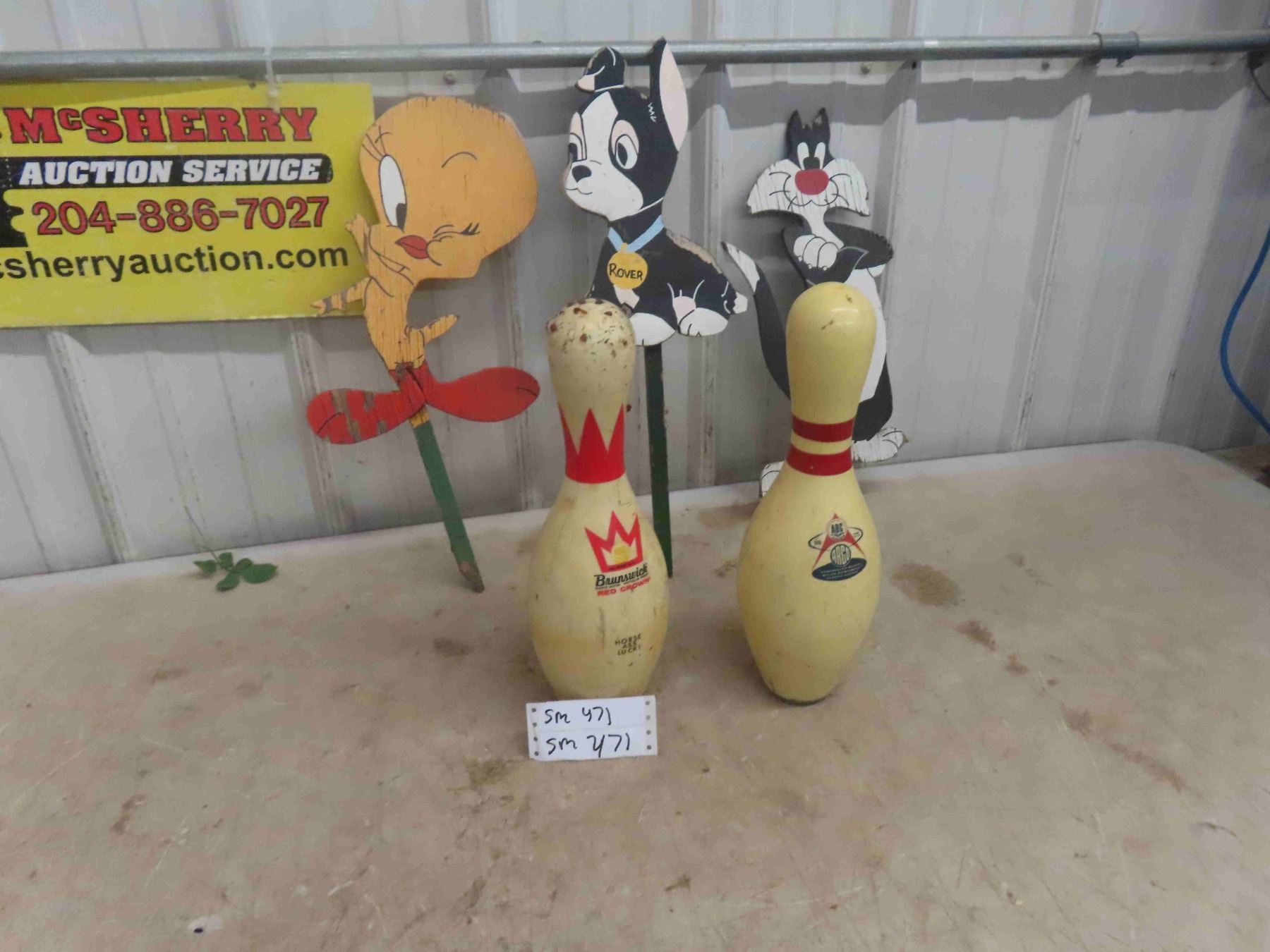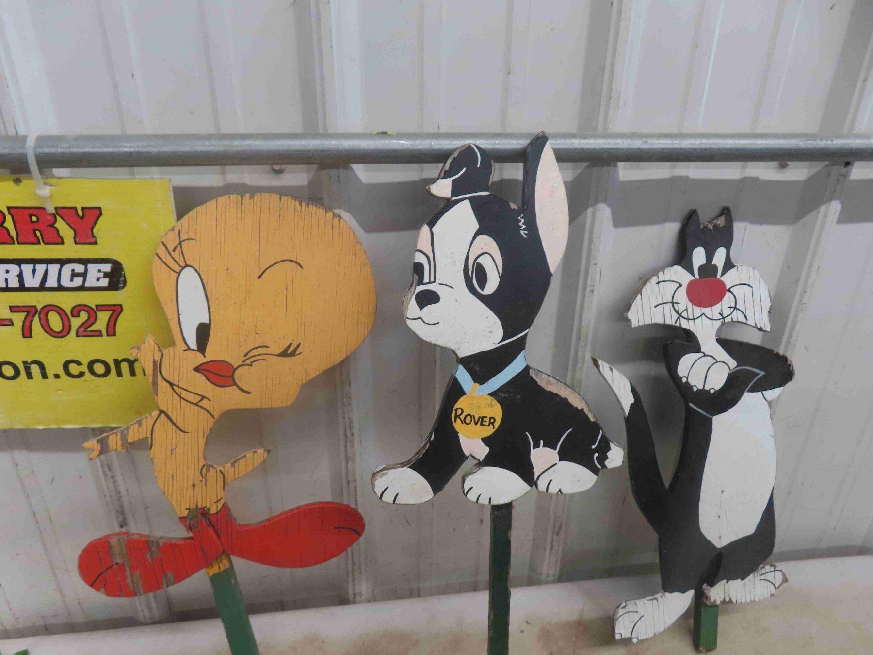 2 Bowling Pins, 3 Wood Looney Tunes Yard Ornaments