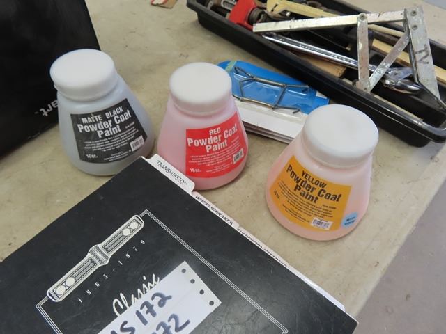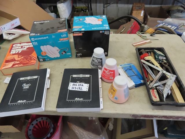 2 Boxes LED Down Lights, Hollander Manuals, Powder Paint, Tray of Tools