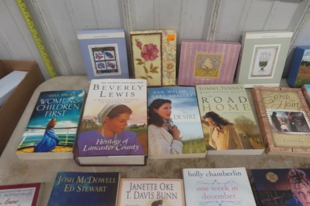 2 Boxes of Books- Lots of Romance and Others, Few Boxes of Greeting Cards