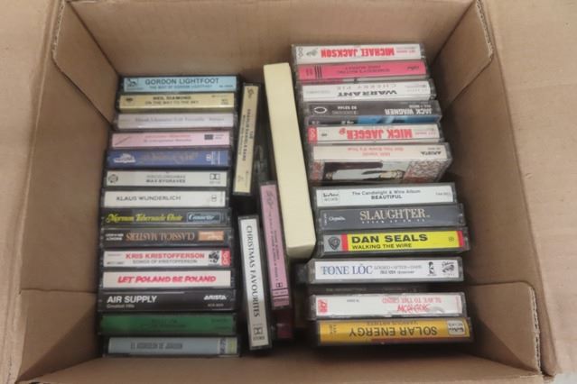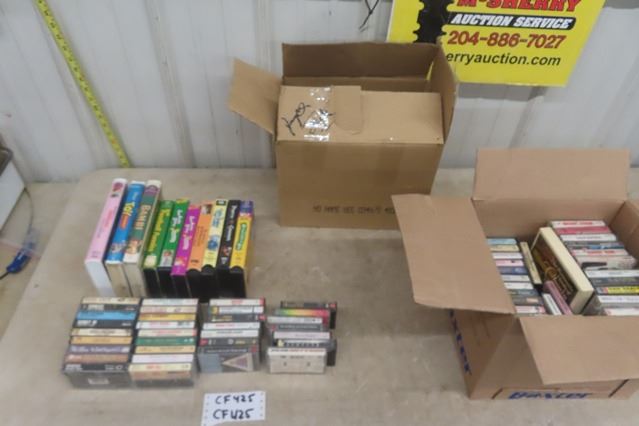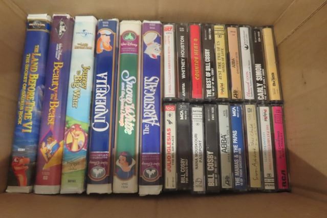 2 Boxes of Misc. Cassette Tapes + VHS Movies