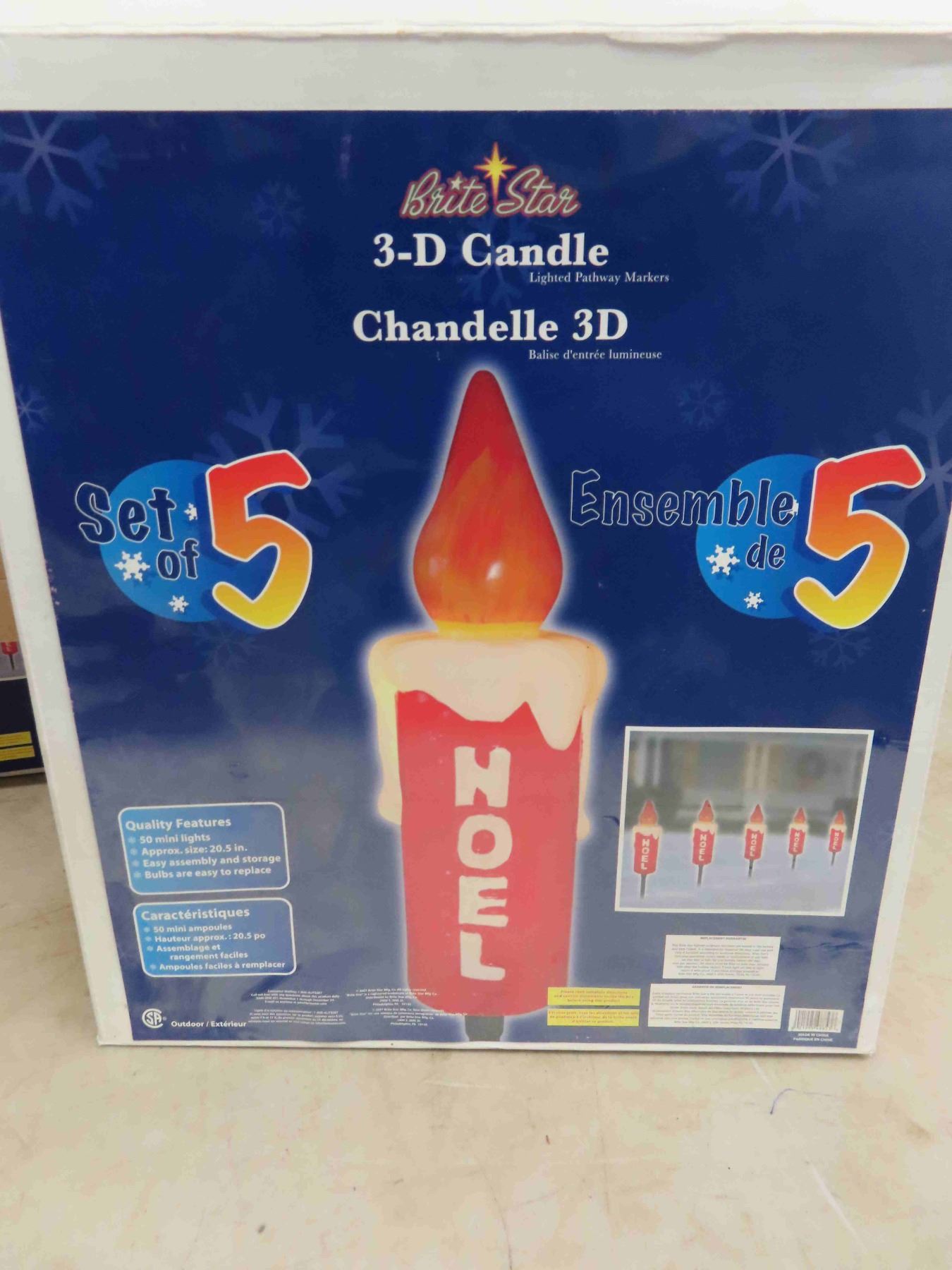 2 Boxes of Noel Plastic 3D Candles - 5 Per Box - 10 Total 26" Tip to Tip