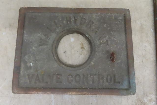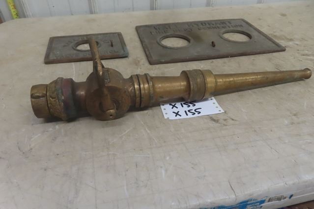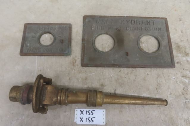 2 Brass Wall Hydrant Valve Control Plates + Brass Fire Hose Nozzle 21" Long