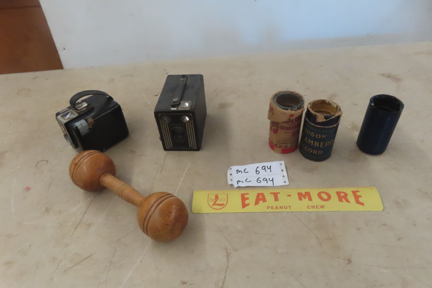 2 Brownie Cameras, Gramophone Cylinders, Plus More.