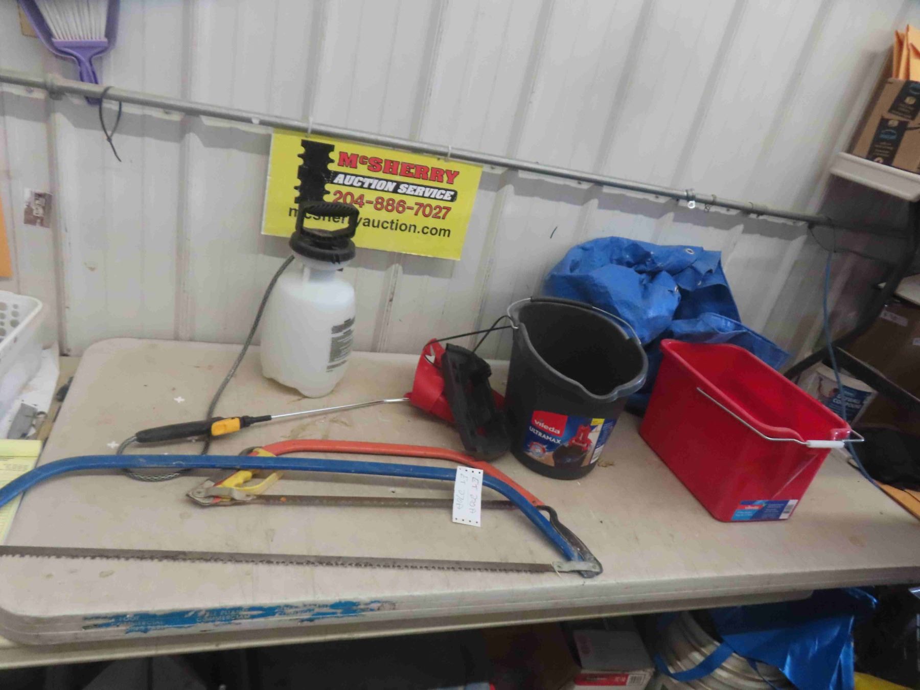 2 Buck Saws, Bottle Sprayer, Mop Pail