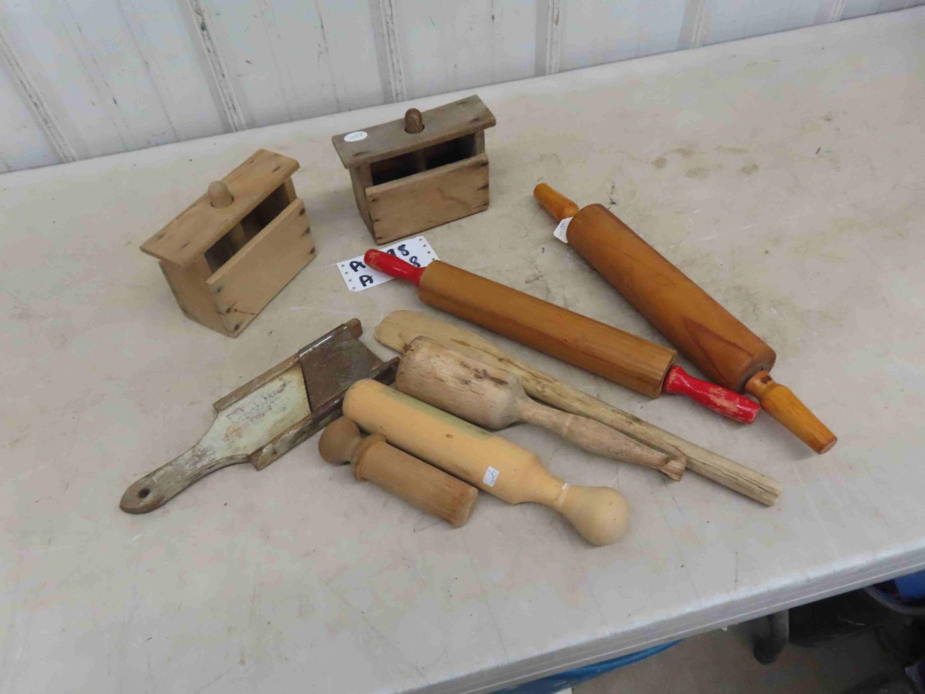 2 Butter Presses, Rolling Pins, Primitive Wood Spoon / Ladle, Wooden Press Plunge