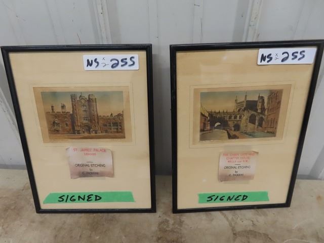 2 C Dickens Original Etchings - Signed 9.5" x 13"