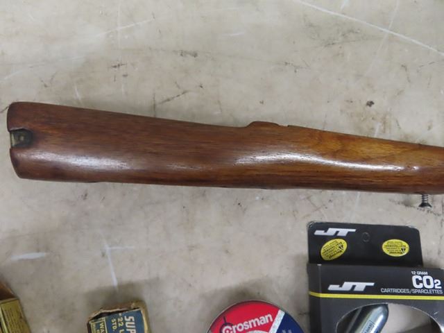 2- CO2 Cartridge , 12 GA Birdshot,Approx 110 - 22 Cal Shells , Wood Forearm off  and Enfield & More!