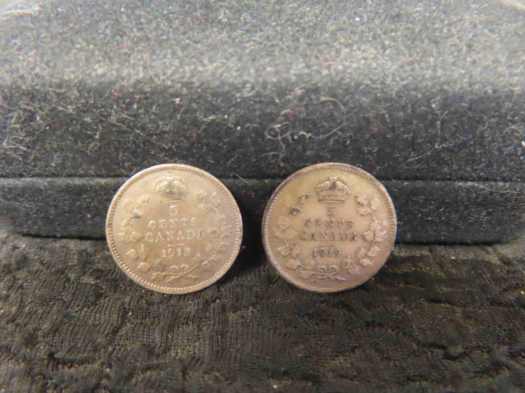 2 Canadian 5 Cent Silver Coins 1913 and 1919