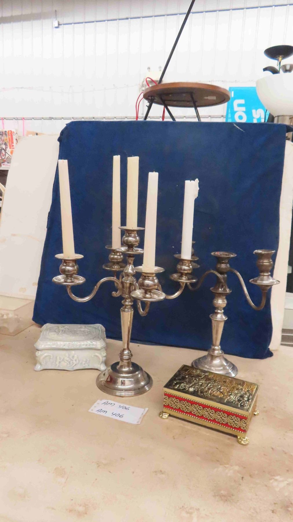 2 Candelabra Candle Stick Holders - Silver Plated & 2 Treasure Boxes