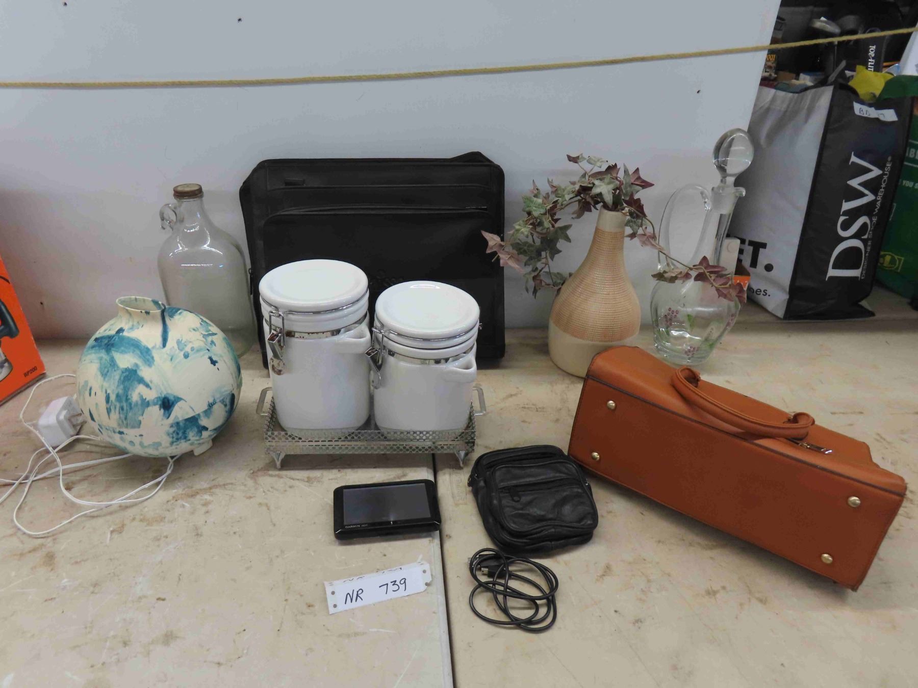 2 Canisters , Vases, Decanters, Garman GPS , Brief Case , Aroma Therapy Mister & More