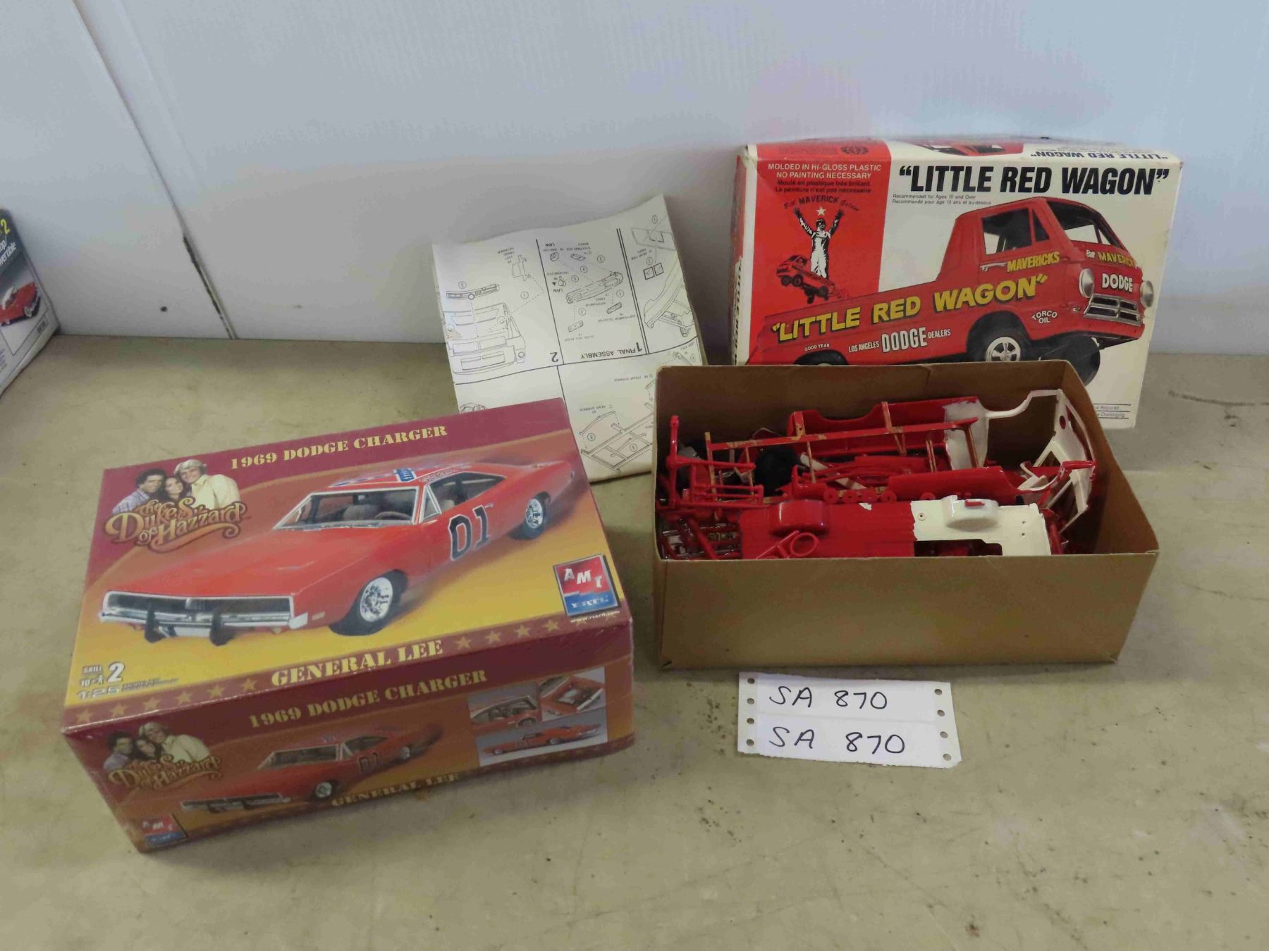 2 Car Models: New in Box 1969 Charger Dukes of Hazard , Dodge Little Red Wagon