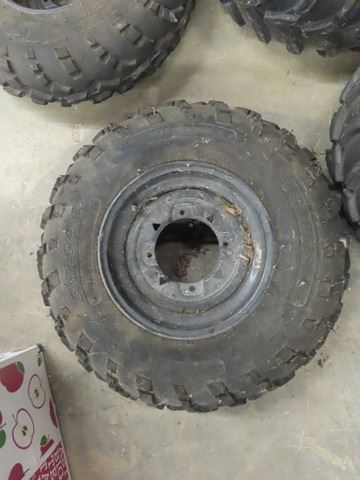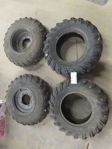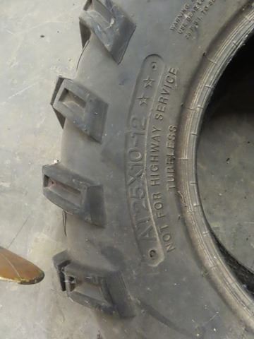 (2) Carlisle AT 489 25 x 8.00 -12 NHS on Rims (2) ITP Mud Lite AT 25x10-2 No- Rims