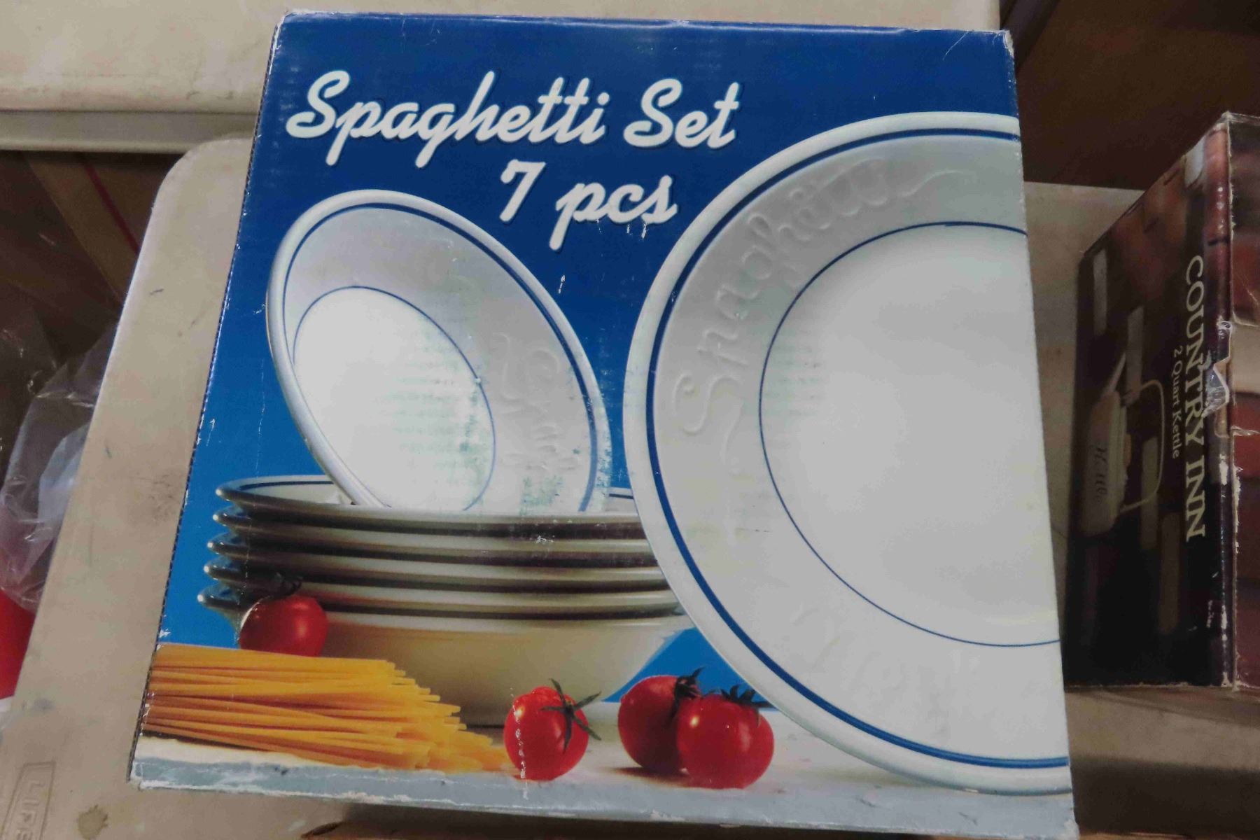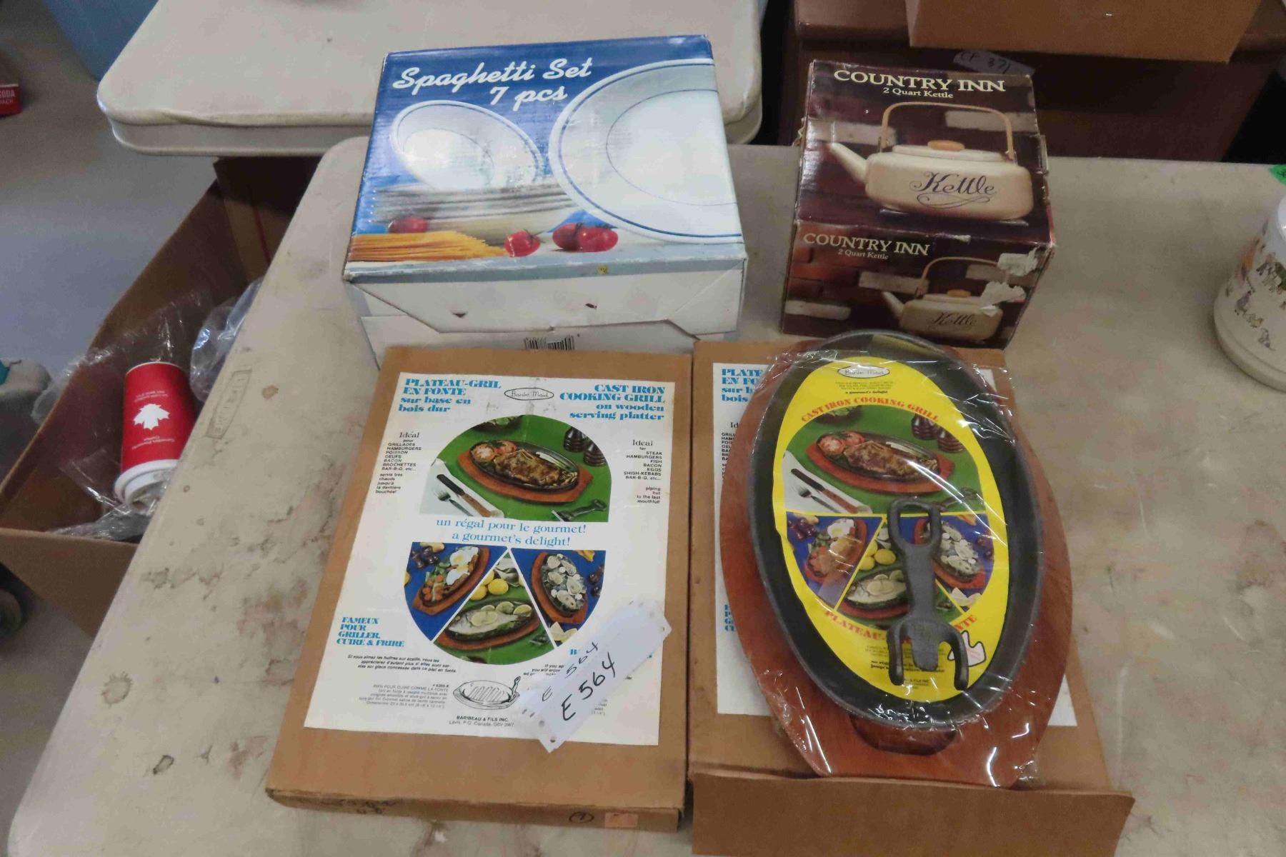 2 Cast Iron Cooking Grills, 7 Pc Spaghetti Set, Country Inn Kettle +