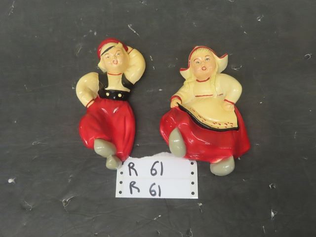 2 Chalkware Wall Ornaments - Both 4" x 7"