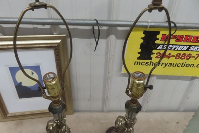 2 Cherub Lamps with Marble Bases, Wolf Silhouette Picture 15" x 18" , Wizard / Dragon Glass Carving 15" x 20"