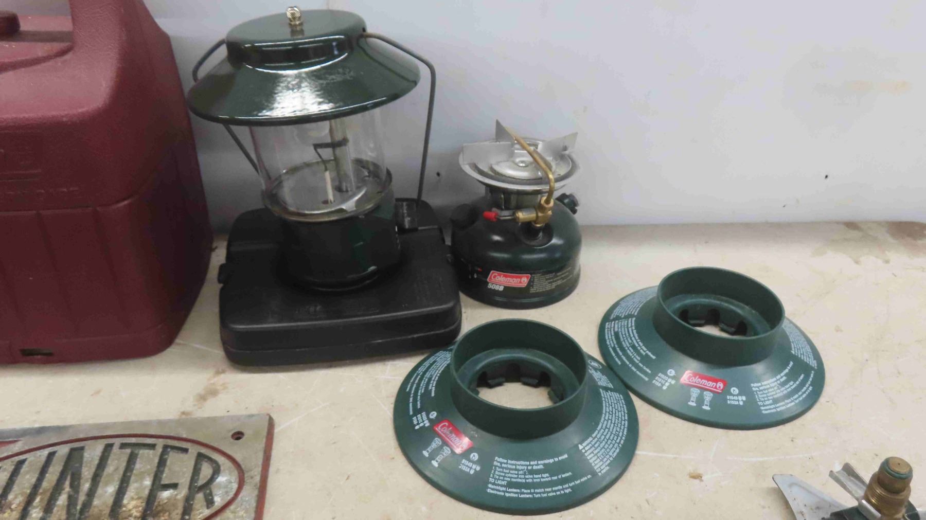 2 Coleman Lantern Bases with Case , 2 Kangaroo Pop Up Bags, Hunter Steel Plaque, Fiskars Pruning Pole