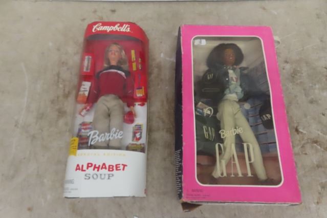 2 Collectible Barbie's in Boxes - Campbells Alphabet Soup, Gap