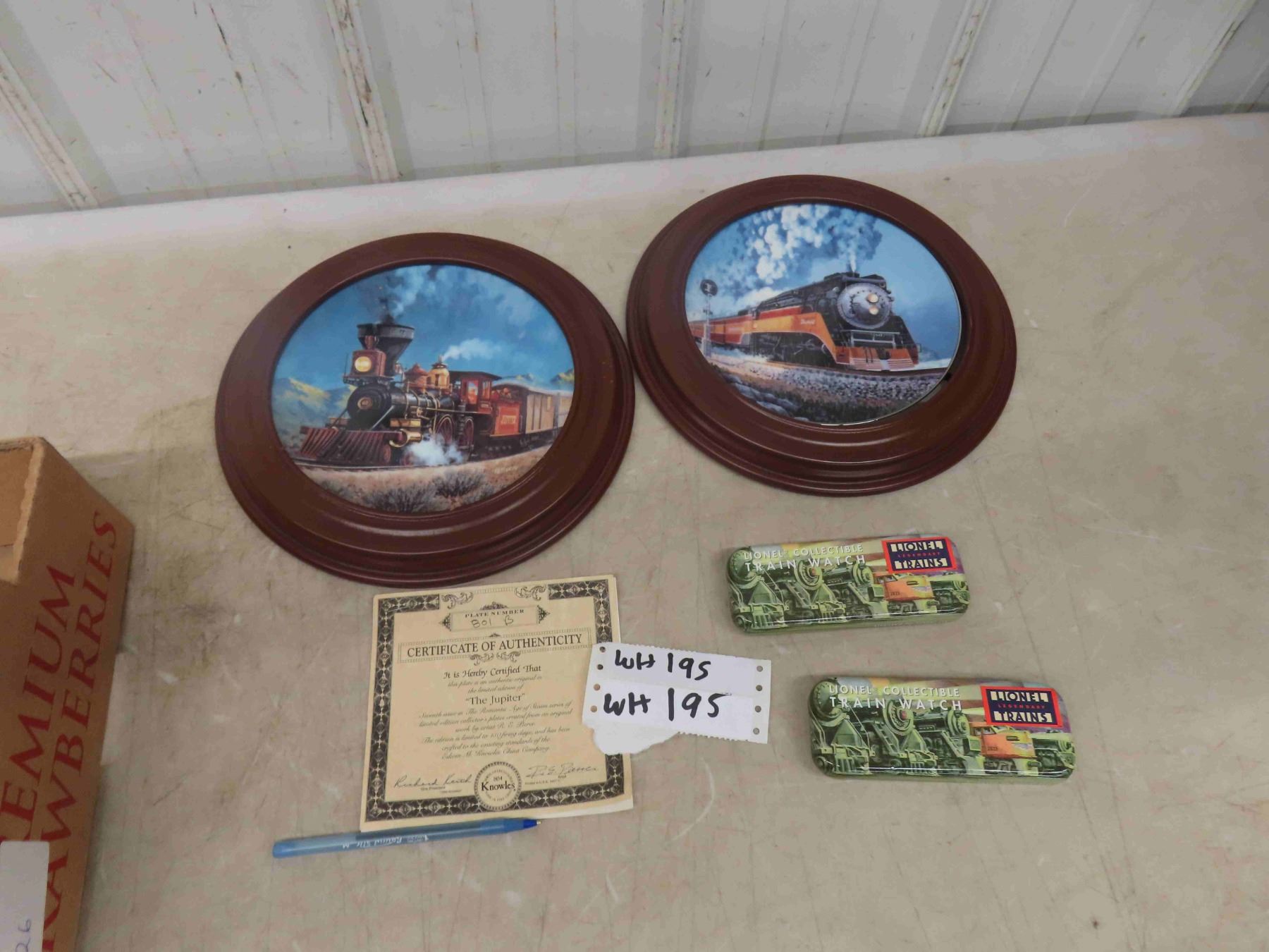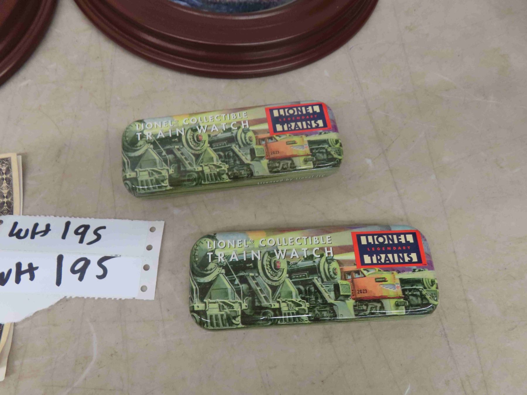 2 Collectible Train Engine Plates , 2 Lionel Train Watches