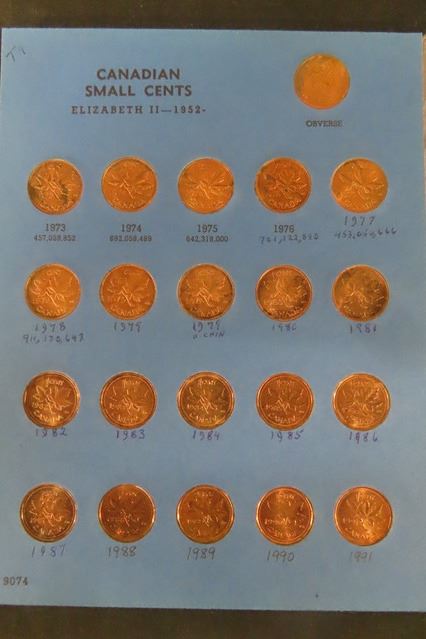 2 Collector Books Canada 1 Cent Coins - 1970 and Up, 1973-2003, 1 Book is Missing a Few