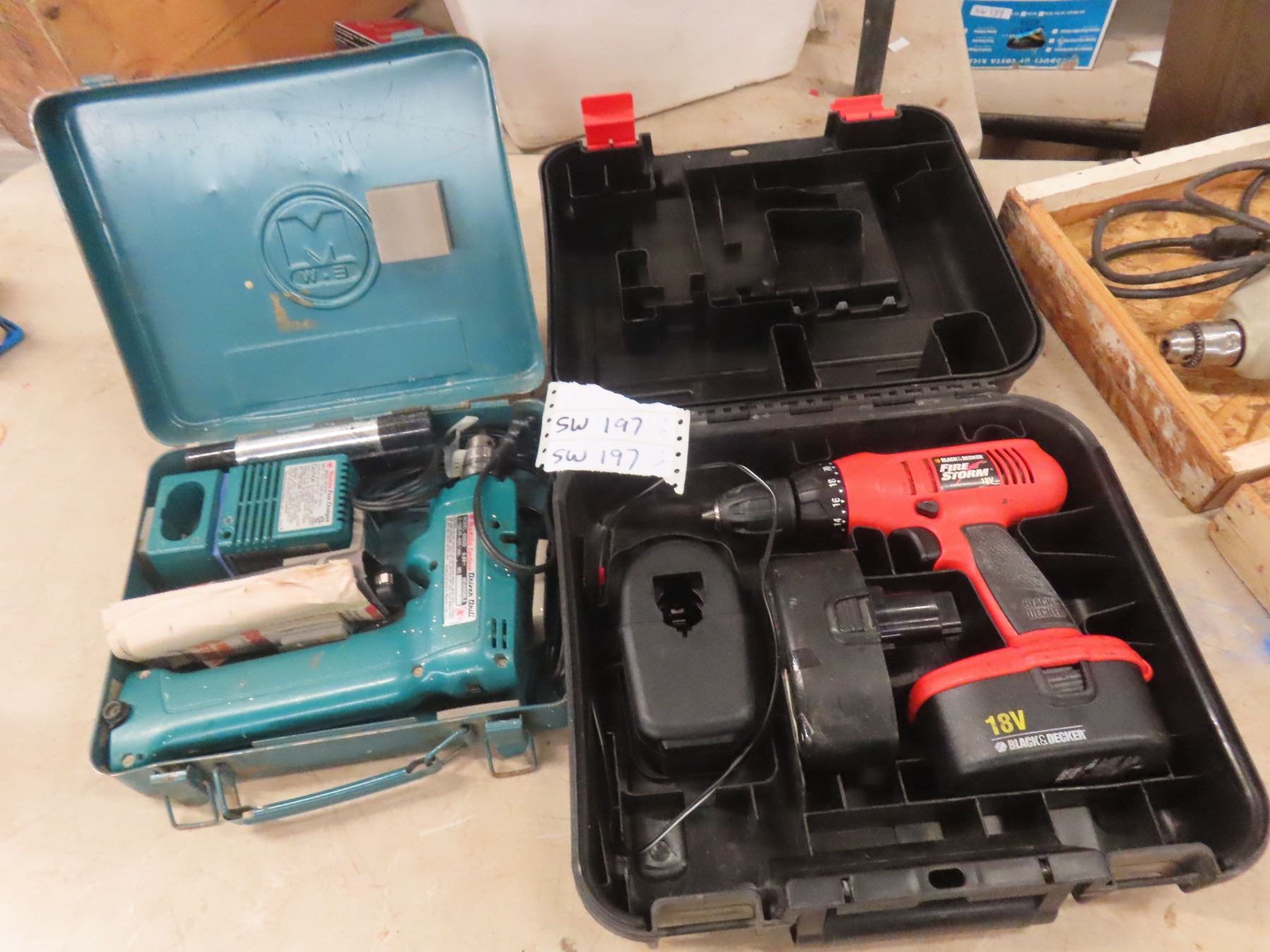 2 Cordless Drills Both with Cases ; B+D 18V + Makita 9.6V