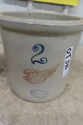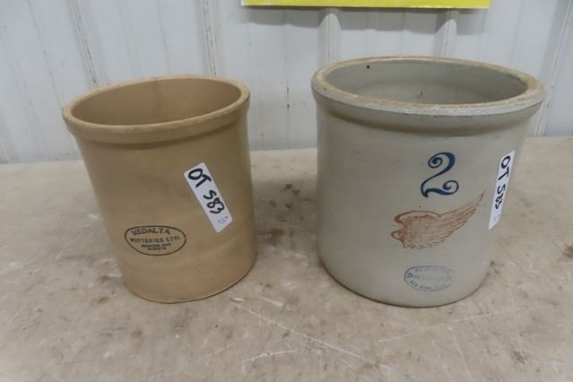 2 Crocks; 1) 2 Gal Red Wing, 1) 1 Gal Medalta - has crack