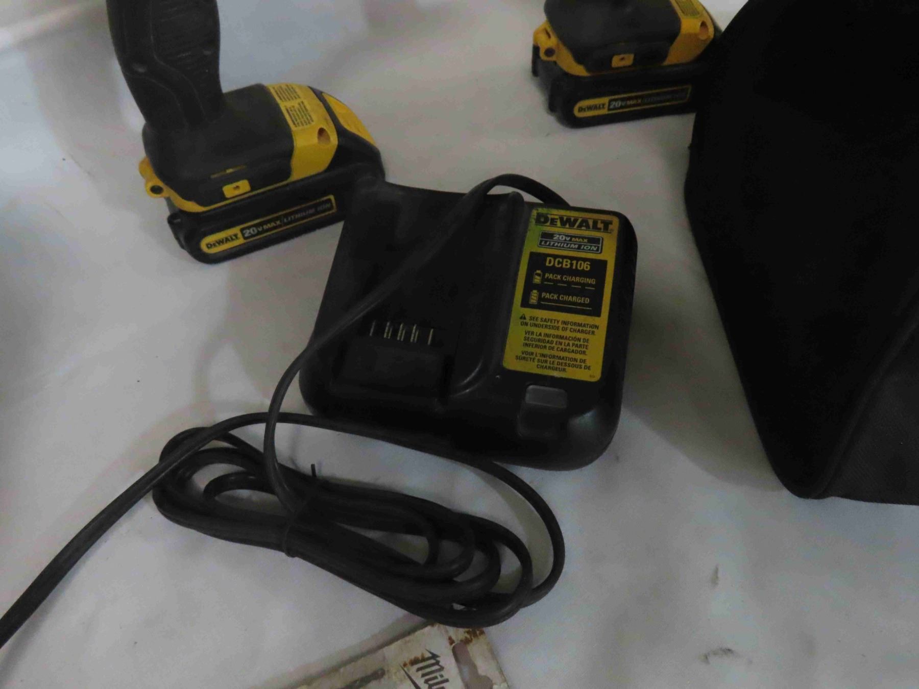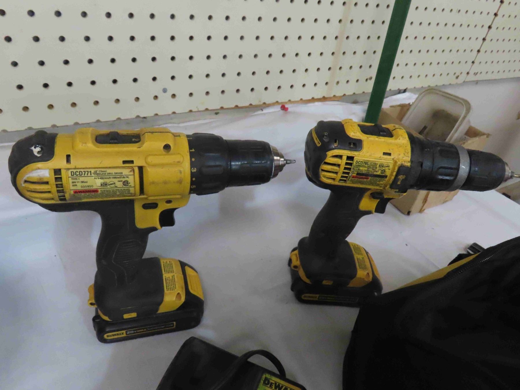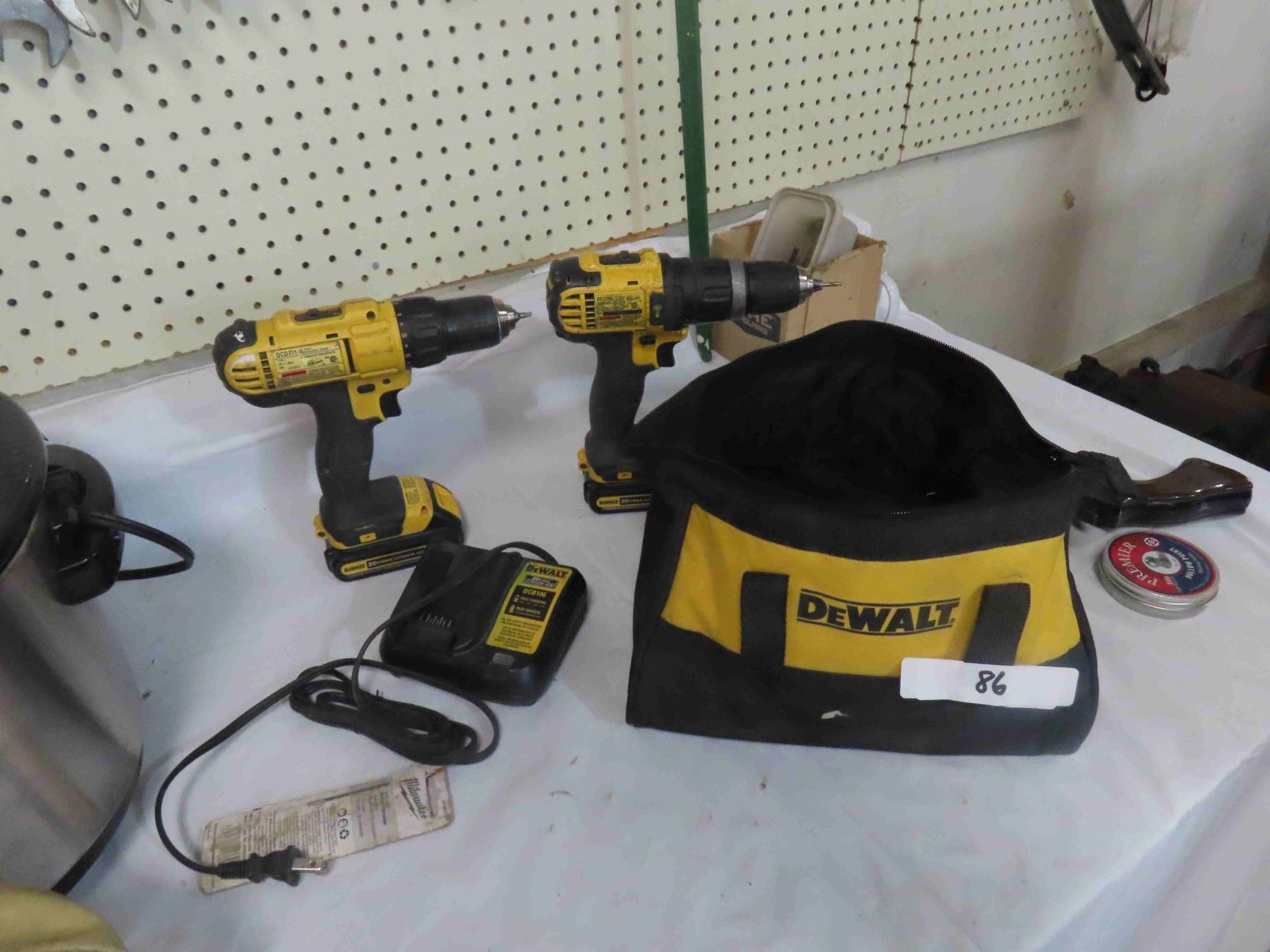 (2) DeWalt 20 V Drills, 2 Batteries, Charger, Soft Case