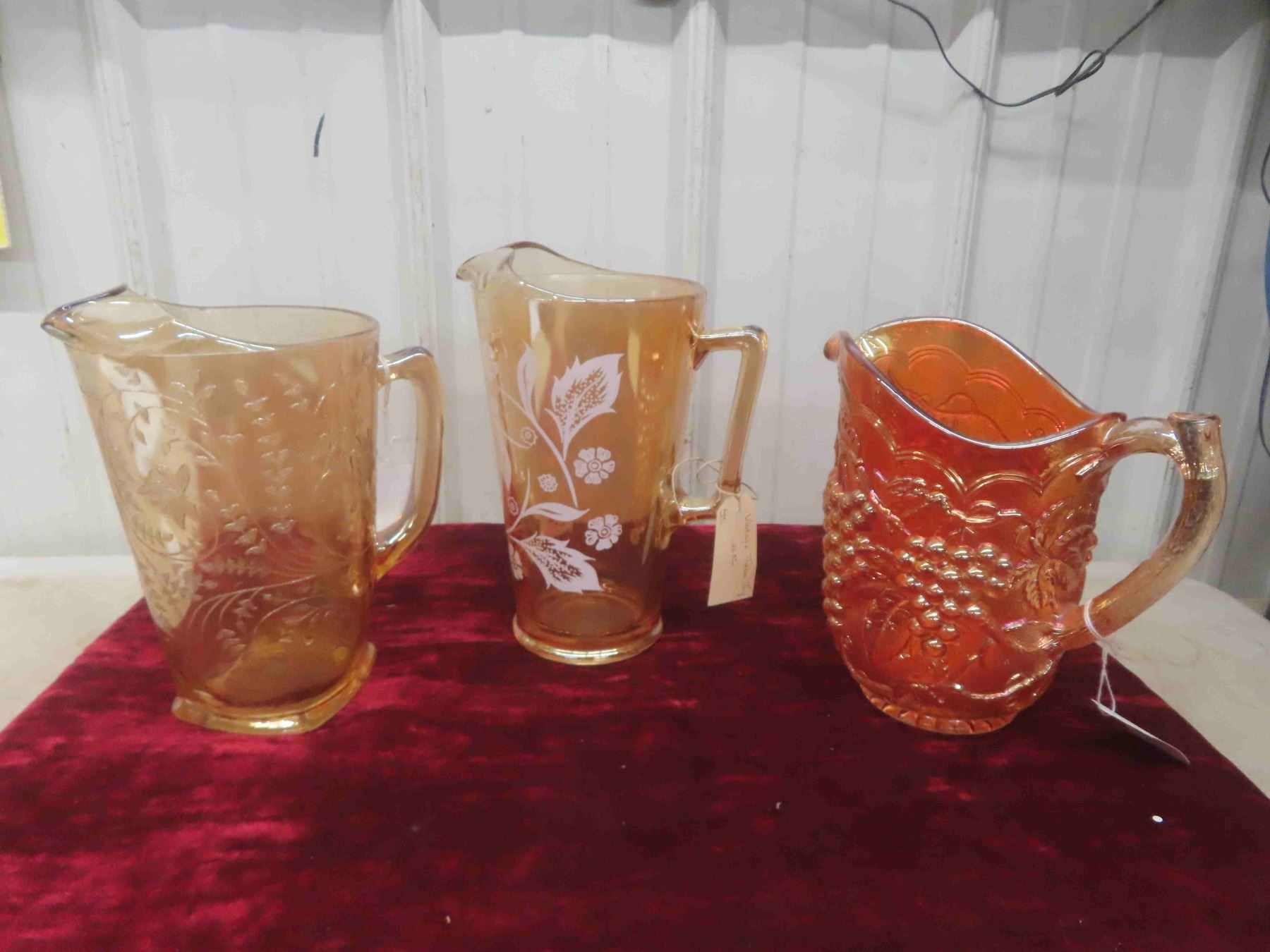2 Depression Glass Jugs, 1 Carnival Glass Jug