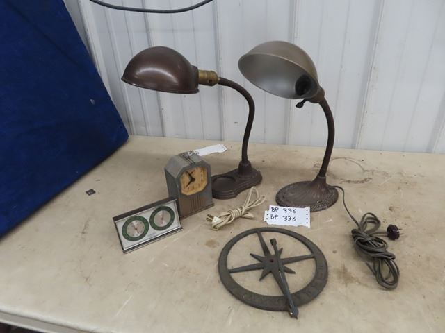 2 Desk Flex Lamps, Metal New Haven Alarm Clock, Barometer, & Sun Dial