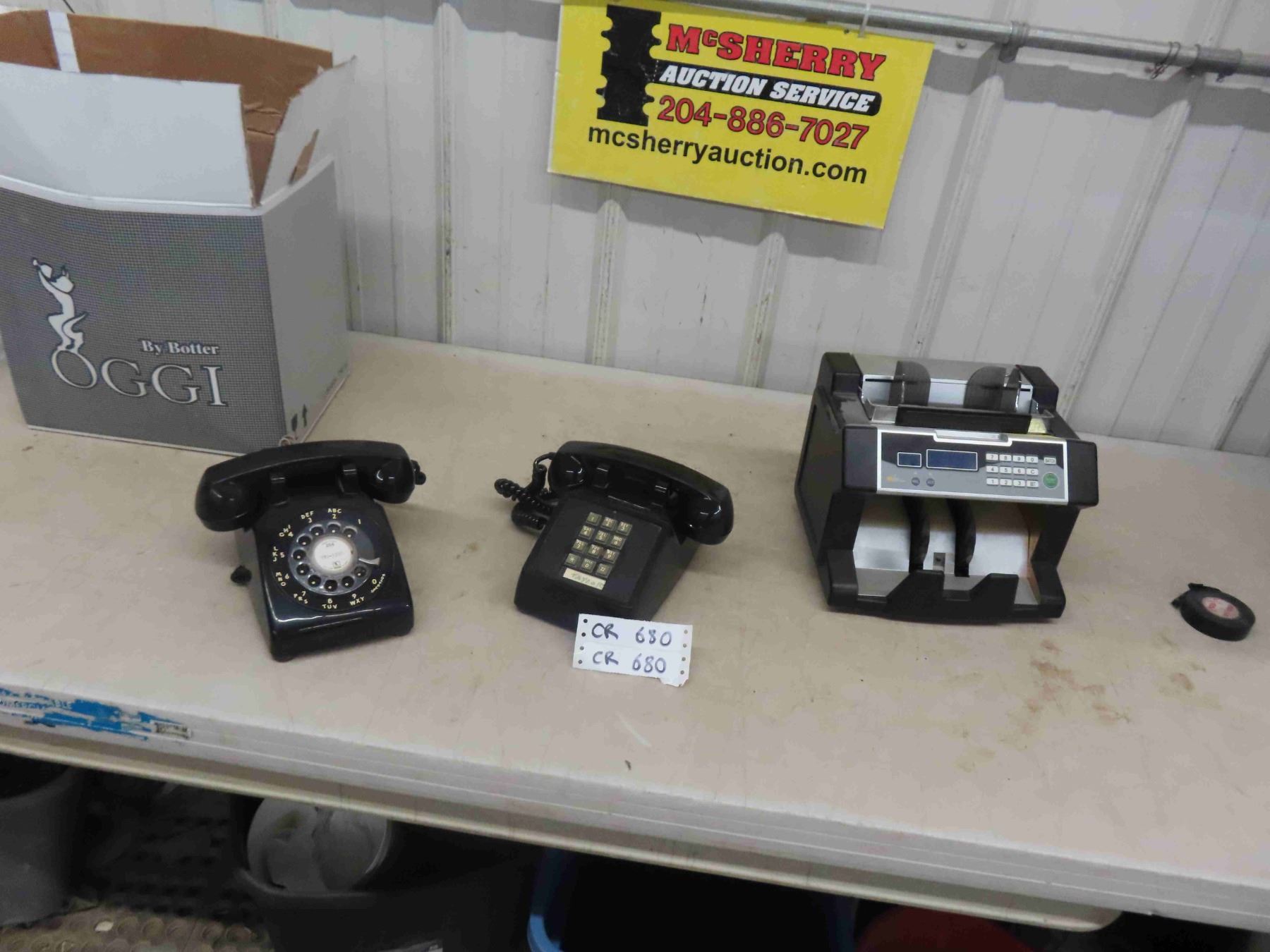 2 Desk Phones (1 Rotary) , 1 Bill Counter