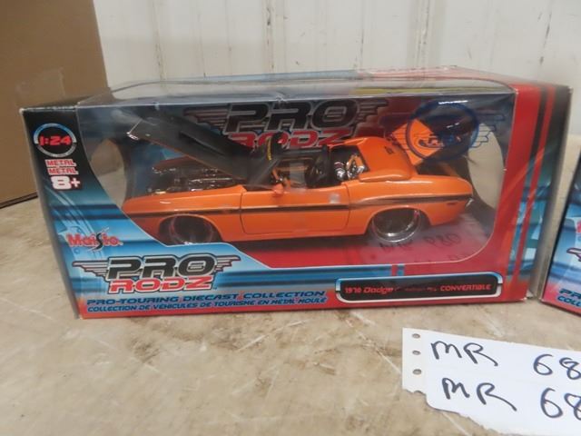 2 Die Cast Cars 1/ 24 Scale ; 1970 Dodge Convertible + Coupe - Both with Boxes