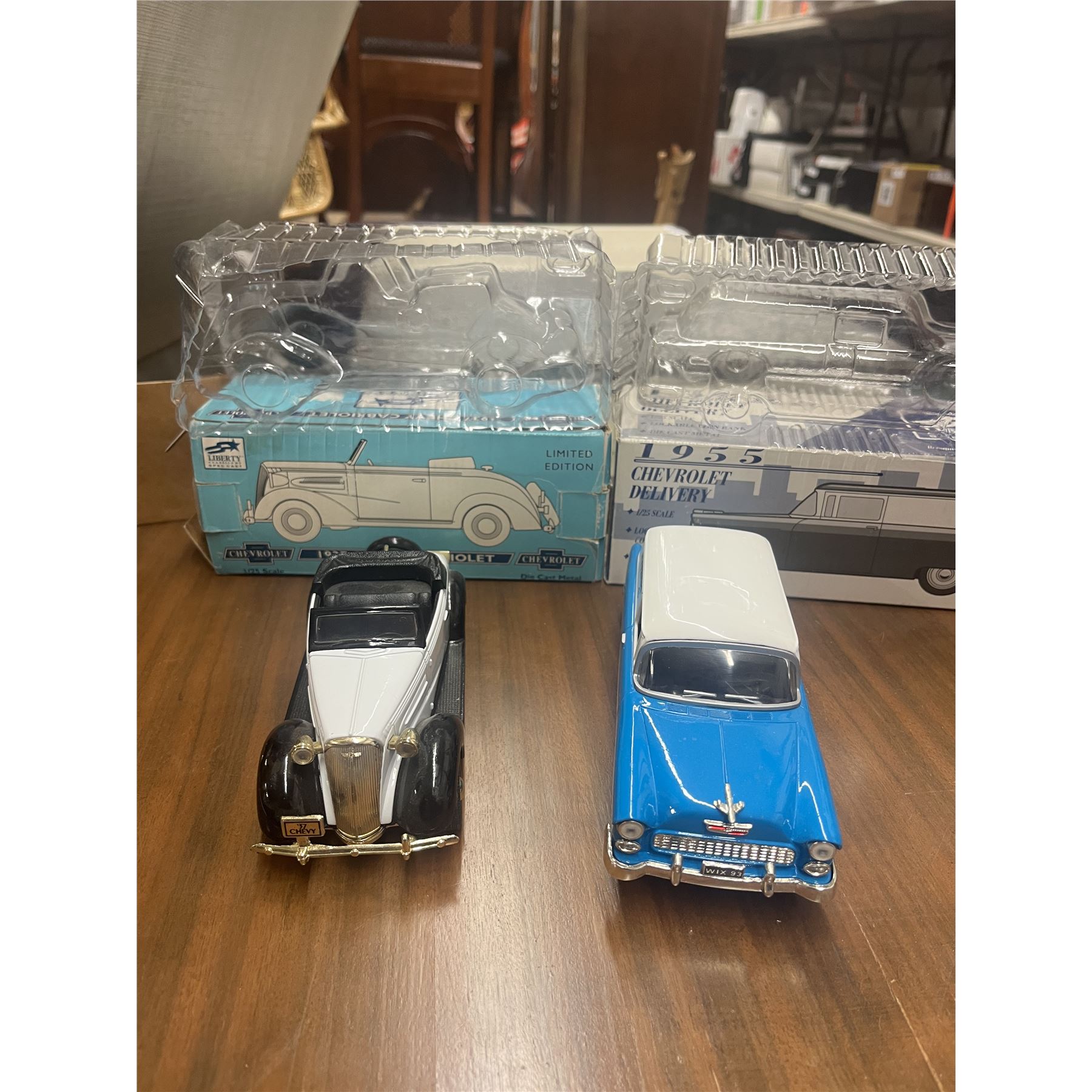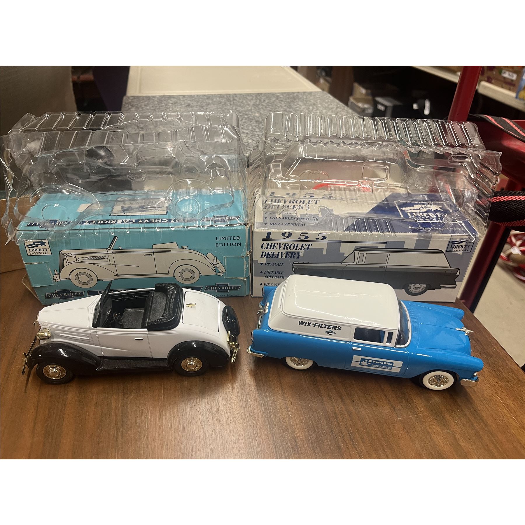 2 Diecast Cars: 1937 Chevy Cabriolet by Liberty Classics, 1955 Chevrolet Delivery - Both Scale 1:25
