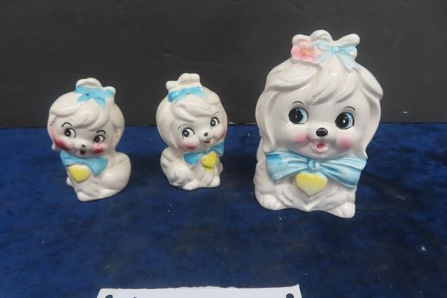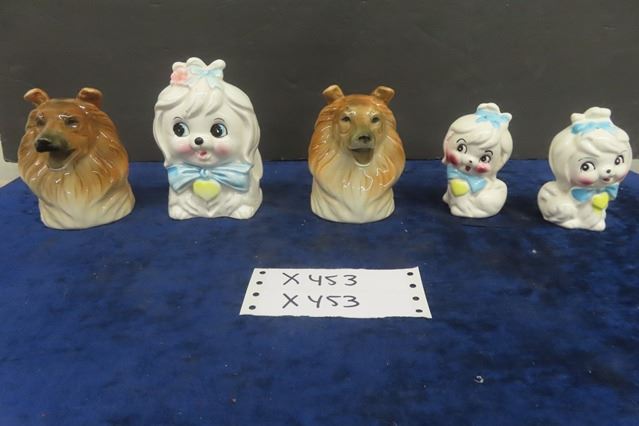 2 Dog Creamers -Japan , 2 Dog Salt + Pepper Shakers + Napkin Holders - Japan, Ceramic - Clean