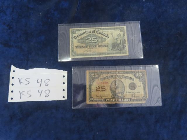 2 Dominion of Canada 25 Cent Paper Notes 1900 + 1923