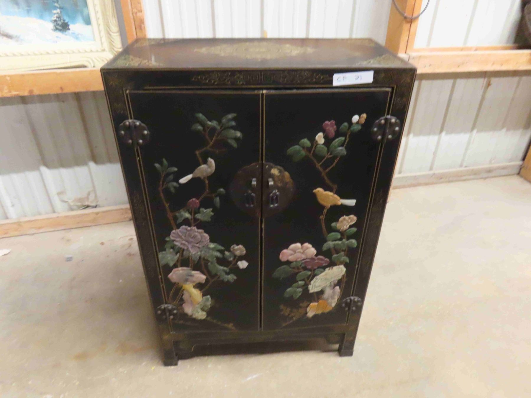 2 Door Cabinet with Oriental Mother of Pearl Style Décor 14" x 27" x 41"