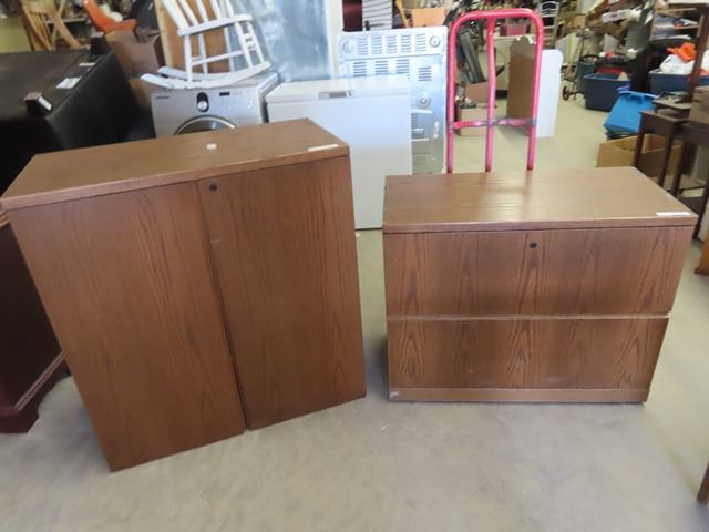 2 Door Oak Filing Cabinet w Hutch, Beside Each other in Picture But is a Top & Bottom