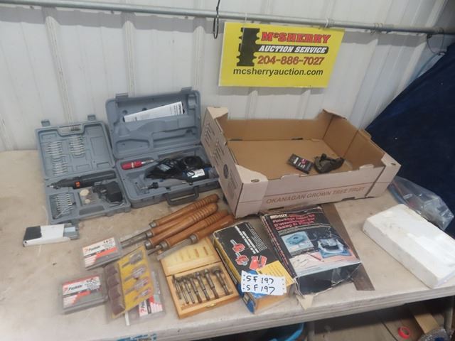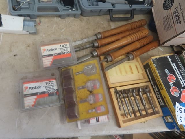 2 Dremels, Wood Lathe CArving Tools, Router Bits plus more