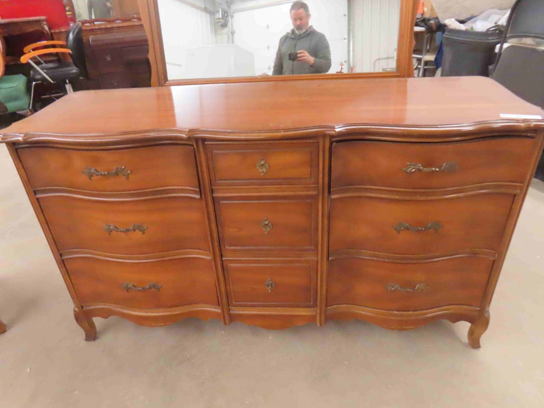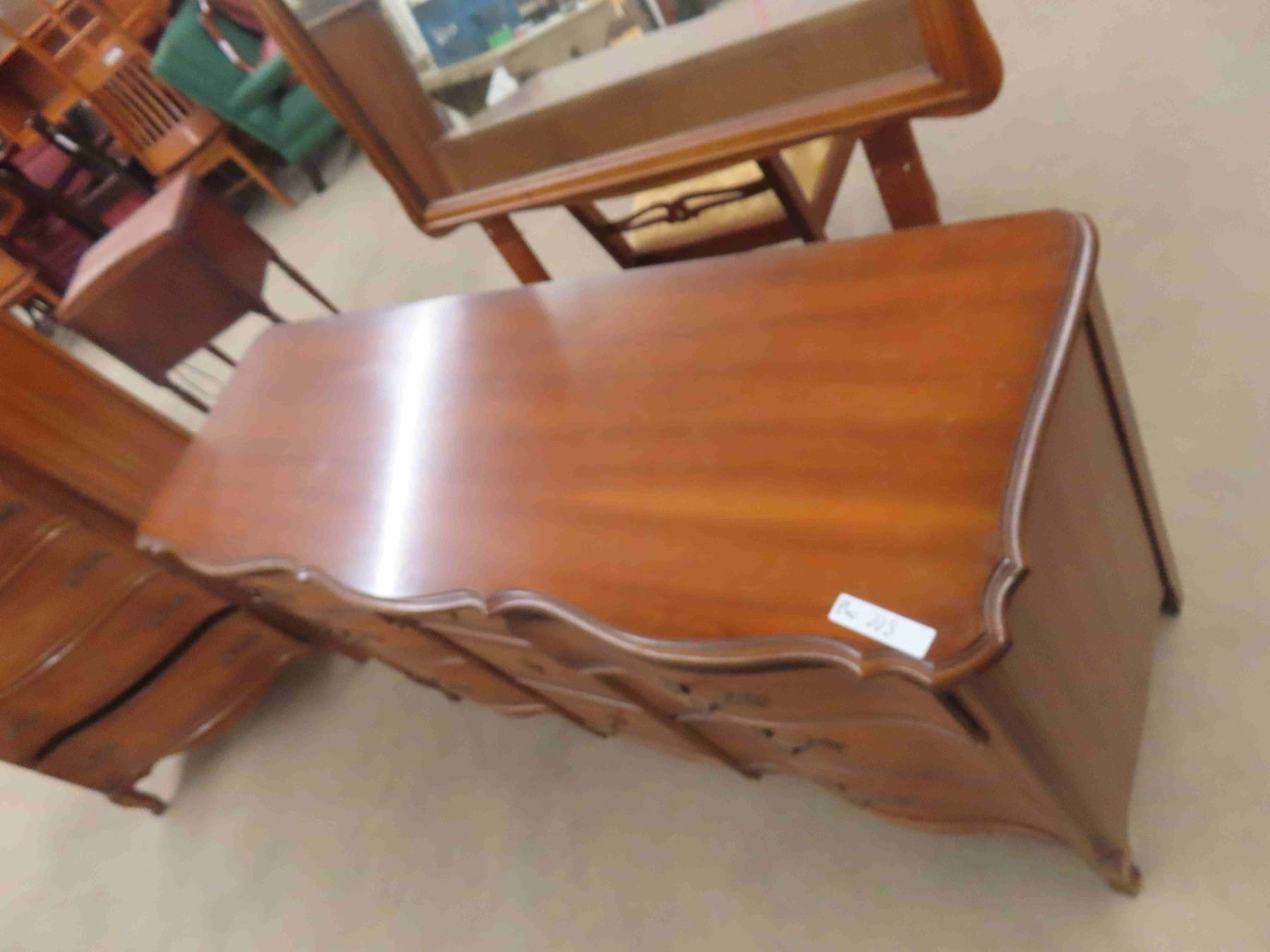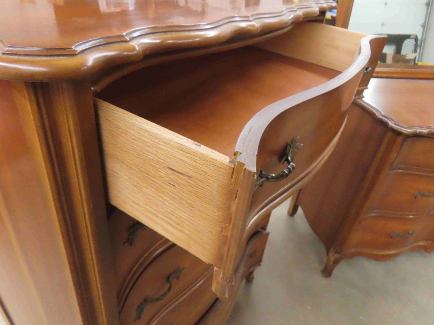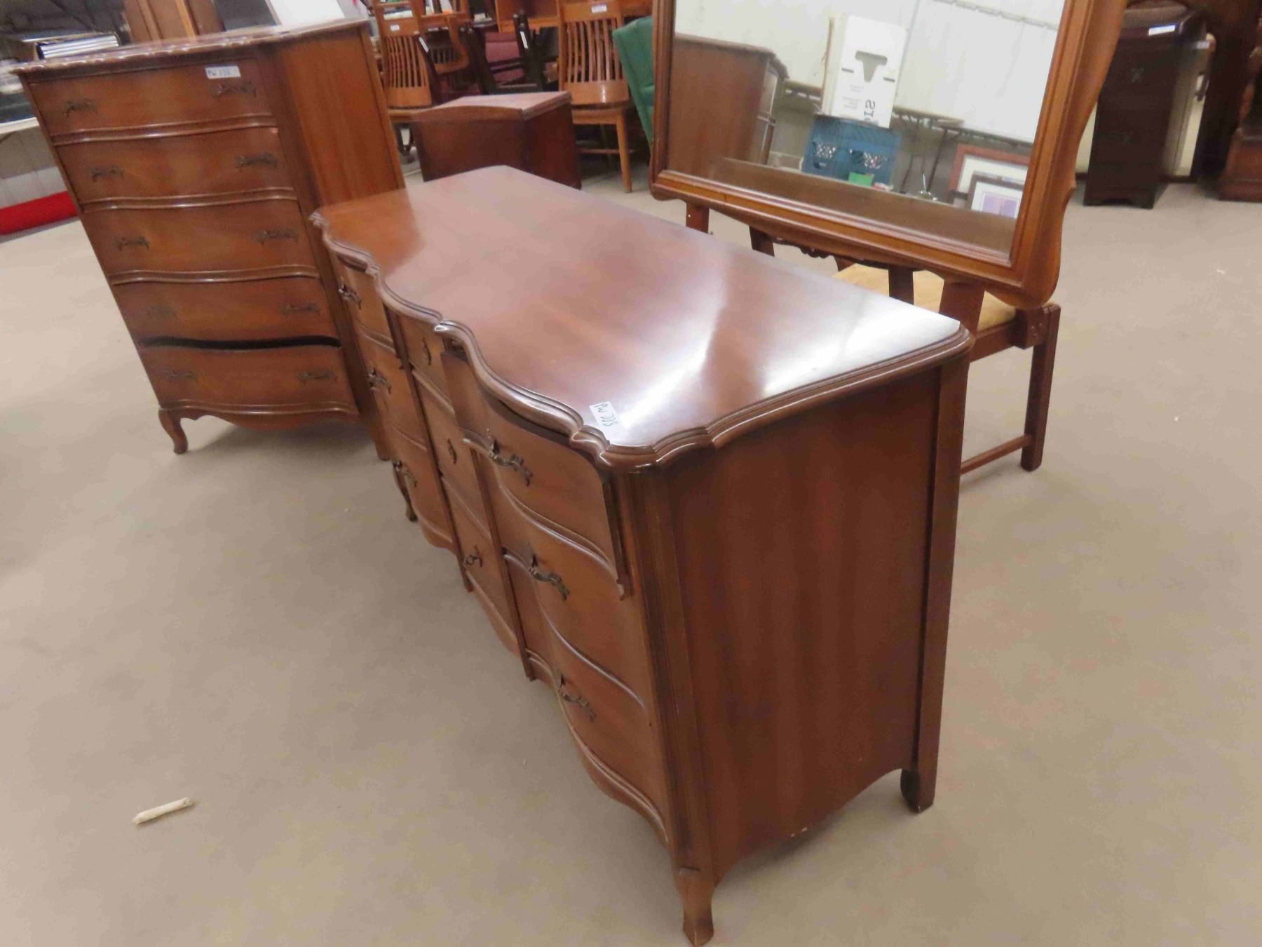 2 Dressers Both Serpentine Front ; 19" x 33" x 47" & 19" x 33" x 59" plus mirror 31 " x 45"