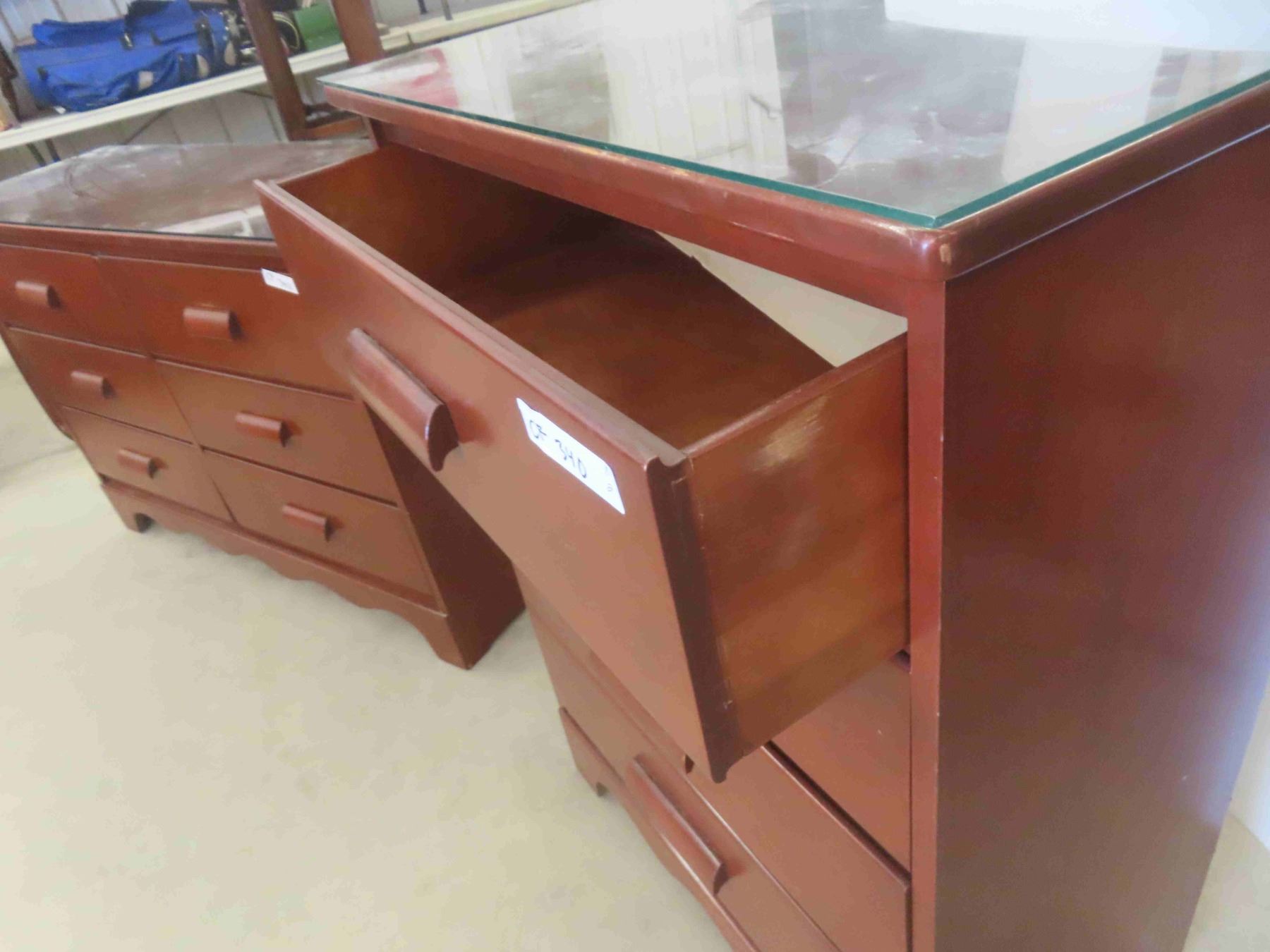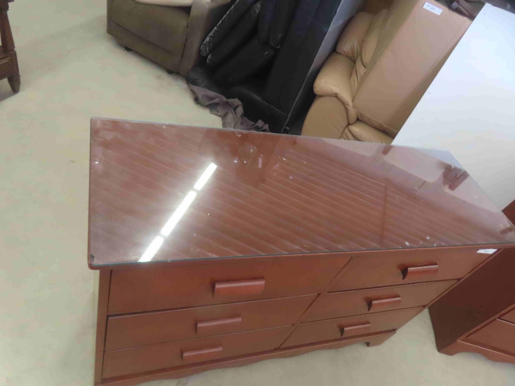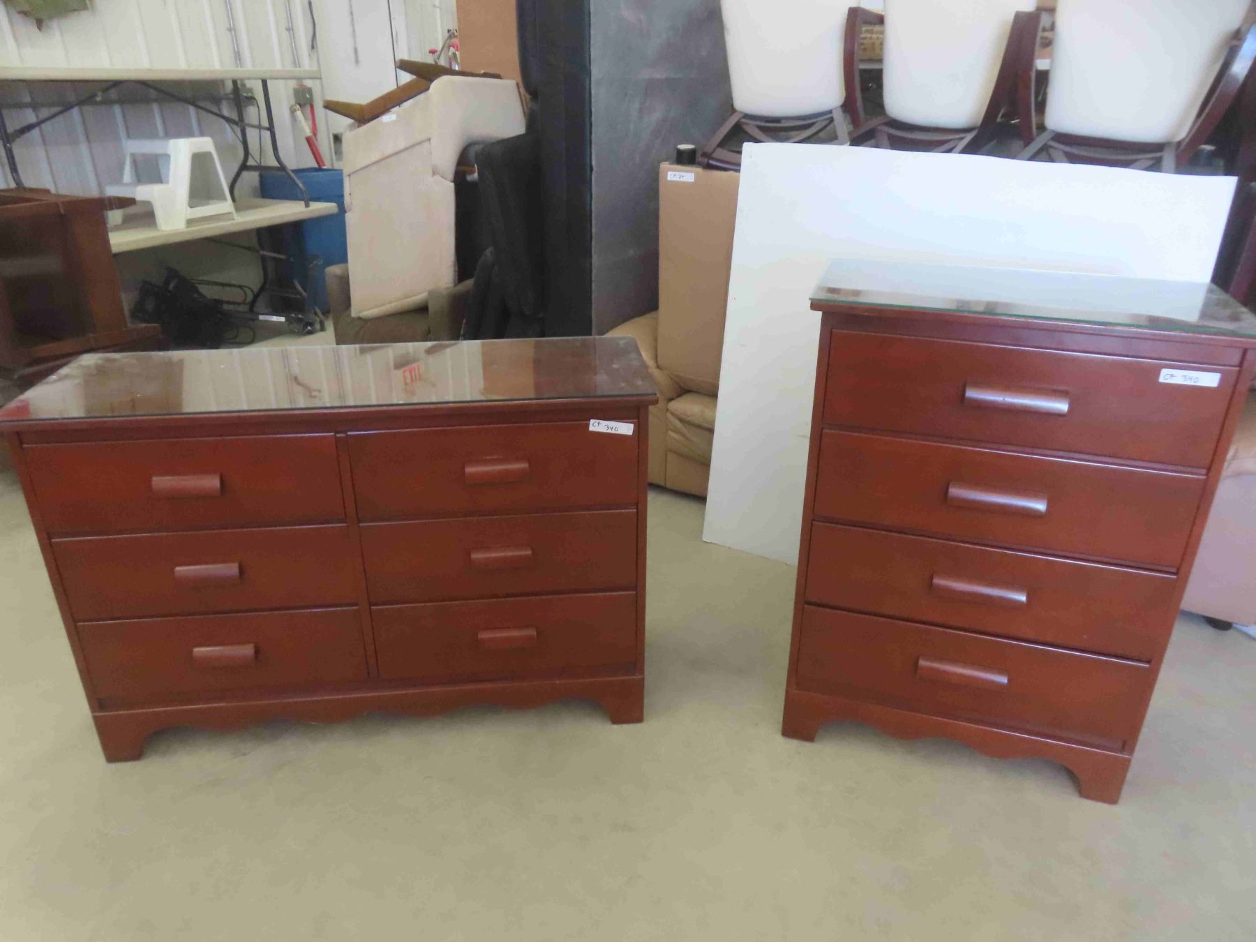2 Dressers , Both with Glass Top Covers (1) 4 Drawer 40'' x 30'' x 17'' , (1) 6 Drawer 32'' x 49'' x 17''