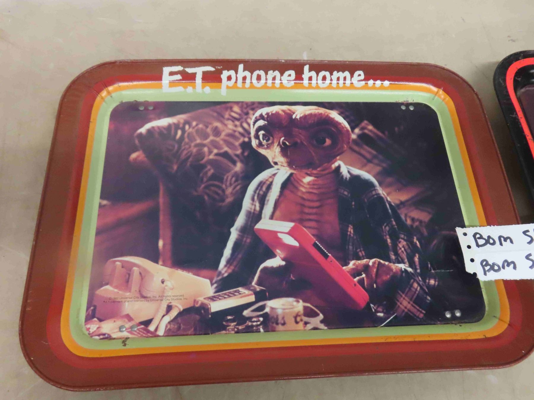 2 ET Phone Home TV Trays - Metal, 1982 12.5" x 17.5"